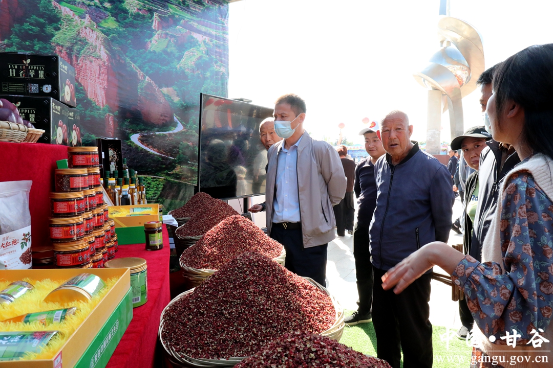 林如海在推介词中说,甘谷是“全国辣椒之乡”,辣椒种植历史悠久,以“甘谷七寸红”为主的辣椒产品,色红肉厚、香辣适口、富含营养,受到国内国际市场的广泛赞誉,被认定为国家地理标志证明商标。甘谷是“中国花椒之乡”,主要种植西北伏椒、大红袍等优良品种,适宜的地理气候条件,赋予其颗粒饱满、麻中蕴香、味美质优的独特品质,倍受消费者和市场的青睐,与甘谷辣椒一起形成“绝代双椒”品牌名片。甘谷是“中国苹果之乡”,为全国花牛苹果的最佳核心生产区,所产花牛苹果高桩端正、芳香浓郁、脆甜可口,先后被评为“农业部优质农产品”“中国名优果品金奖”。甘谷不仅盛产“双椒一果”,还是全省蔬菜重点生产县、全国花卉生产示范基地,所产药材、杂粮、油料等农产品也以“品质道地、绿色健康、纯香味美、营养丰富”而著称,已成为促进群众增收、带动农村发展的支柱产业。