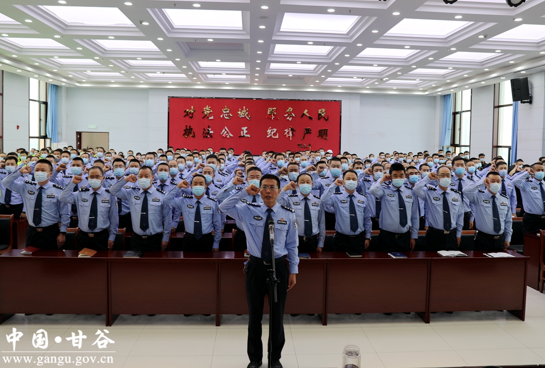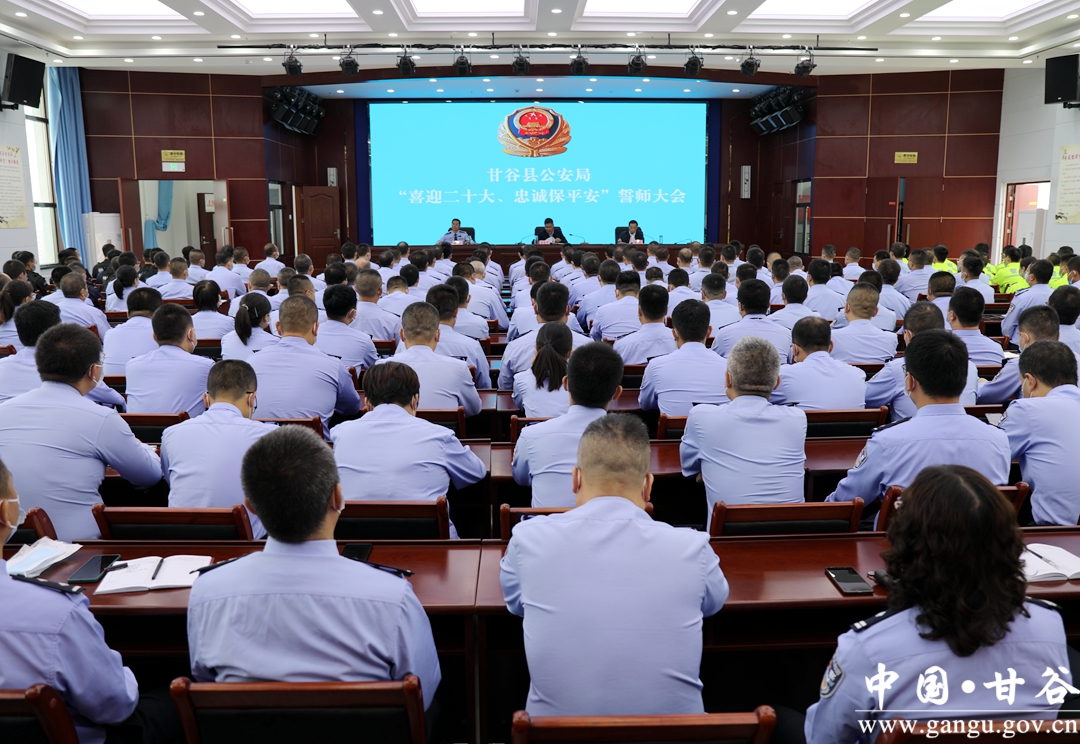 9月17日,甘谷县召开“喜迎二十大·忠诚保平安”誓师大会。县委副书记、县长孙忠平出席会议并讲话。县委常委、政法委书记杜兴主持会议。副县长、县公安局局长张涛带领参会人员进行宣誓并代表公安系统作表态发言。县公安局全体领导班子成员,所属单位及各派出所负责人和民辅警共计280余人参加会议。