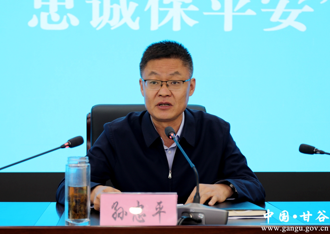 孙忠平要求,全县公安机关要在坚定捍卫“两个确立”、坚决做到“两个维护”的政治高度,忠诚履行“捍卫政治安全、维护社会安定、保障人民安宁”的神圣使命,坚持“万无一失”的工作标准,树立“一失万无”的忧患意识,始终保持枕戈待旦、快速反应的战斗状态,在硬战中勇于亮剑、在决战中勇往直前,努力建设更高水平的平安甘谷。要忠诚践行“对党忠诚、服务人民、执法公正、纪律严明”的总要求,坚持政治建警、素质强警、从严治警、从优待警,教育引导广大干警进一步坚定绝对忠诚的政治品格,强化执法为民的宗旨意识,锤炼敢于担当的工作作风,筑牢清正廉洁的职业操守,推动全面从严管党治警常态化、制度化,切实以更强的党性原则、政治觉悟、组织观念践行宗旨、履行职责,着力锻造一支具有“铁一般的理想信念、铁一般的责任担当、铁一般的过硬本领、铁一般的纪律作风”的高素质公安队伍。要紧紧围绕经济社会发展重点任务落实和社会稳定,积极融入、主动服务全县大局,切实发挥好对经济高效发展、社会和谐稳定的保驾护航作用。