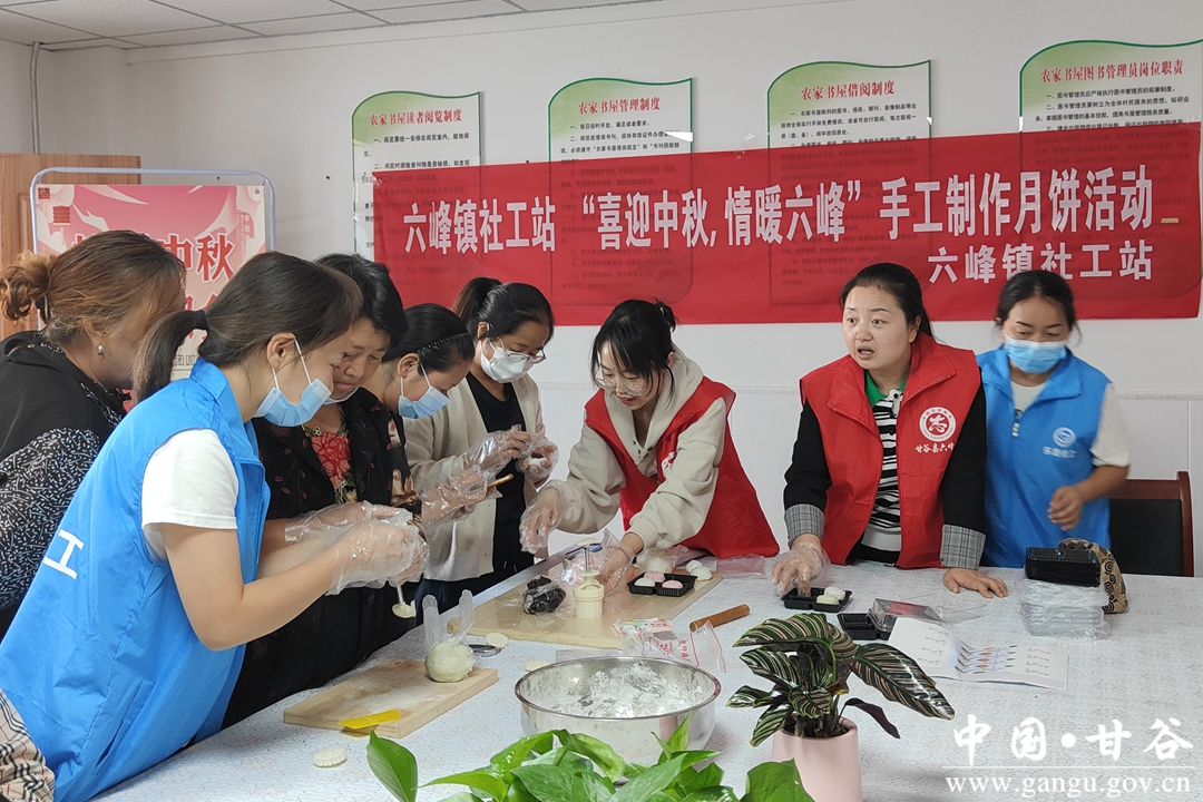 活动邀请了六峰镇新庄村、蒋家寺村、六峰村等村部分群众观看了短视频《中秋节的起源》;来自六峰镇社工站的社工为群众带来了书香陇原·经典诗词朗诵;志愿者和群众一起动手制作了中秋节月饼,并走访看望了高龄老人。