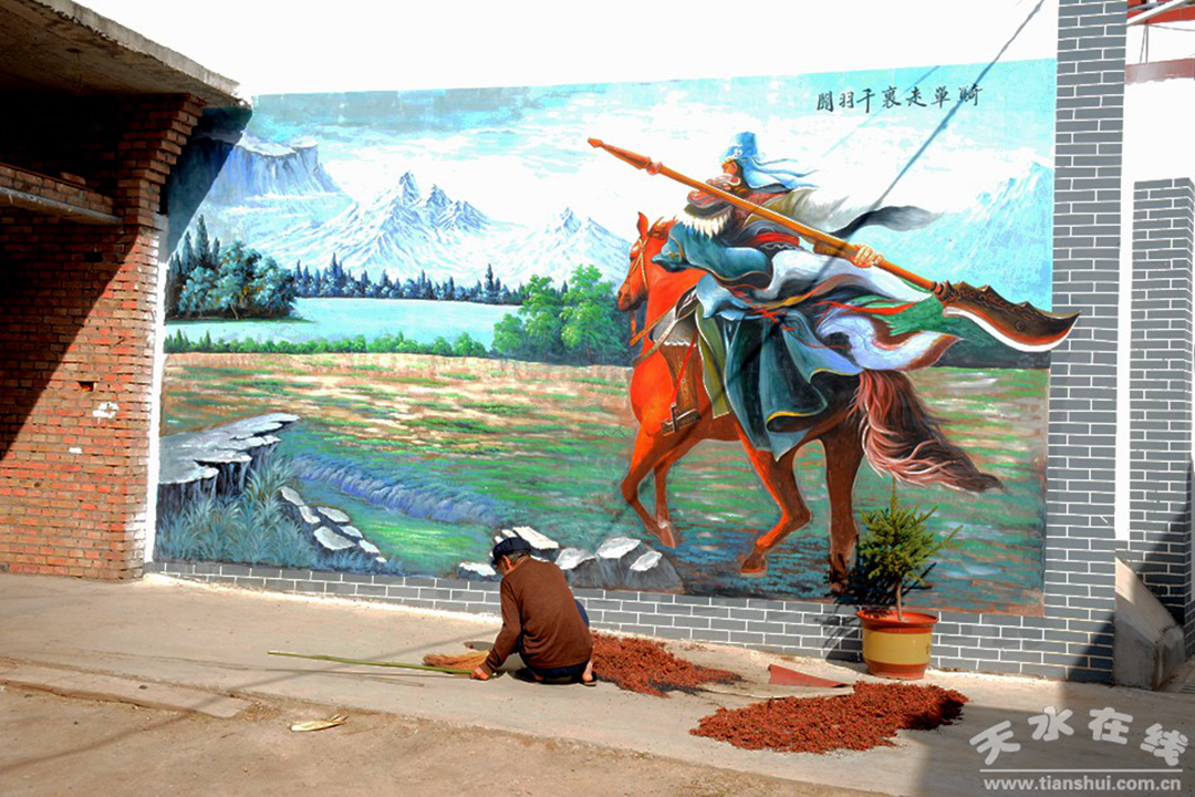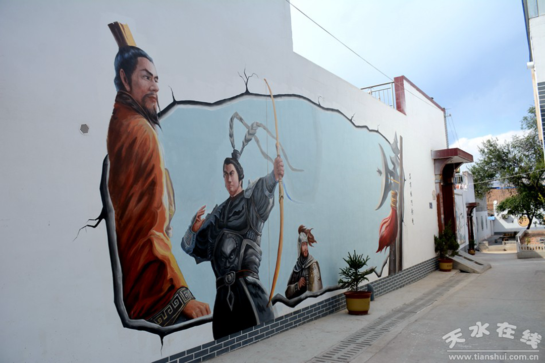 六峰镇姜家庄是蜀汉大将军姜维故里。采风时正值傍晚,落日的余晖洒在姜维祠巍峨的殿宇之上,洒向村内青瓦白墙错落有致的农家小院间。在干净整洁的村中小道两旁,徐徐铺展开来一幅幅栩栩如生的三国文化彩绘。在持续多年的文明乡村建设中,村民的精神文化生活进一步充实,文化素质和文明素养进一步提升,采风组一行连连为乡村发展面貌称赞。