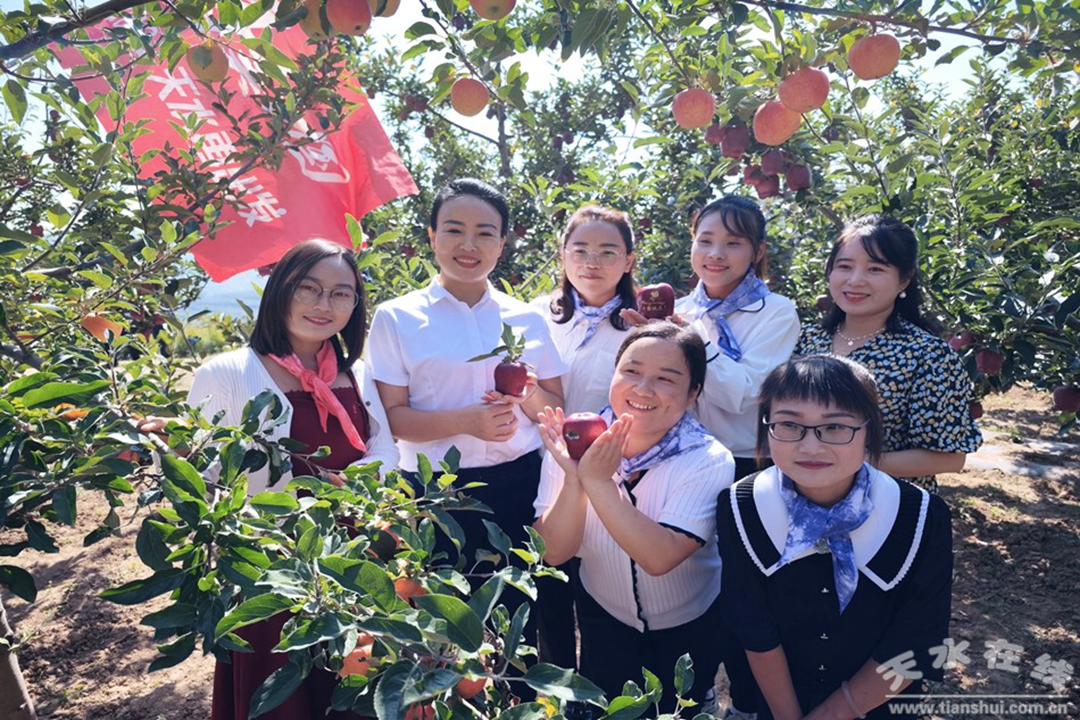在甘谷县白家湾乡“感党恩 庆丰收”苹果产销对接活动上,采风组一行深入田间地头,充分发挥新阶层人士特点,通过新阶层人士代言、现场直播、拍摄宣传图片视频等方式,借力网络平台,助力苹果销售。当日,正值中秋佳节和教师节即将来临之际,市新联会还开展了“情暖童心”爱心校服捐赠活动,市新联会副会长单位、天水天兴人力资源公司向白家湾乡学区捐赠校服200套,收到了师生们的致谢。