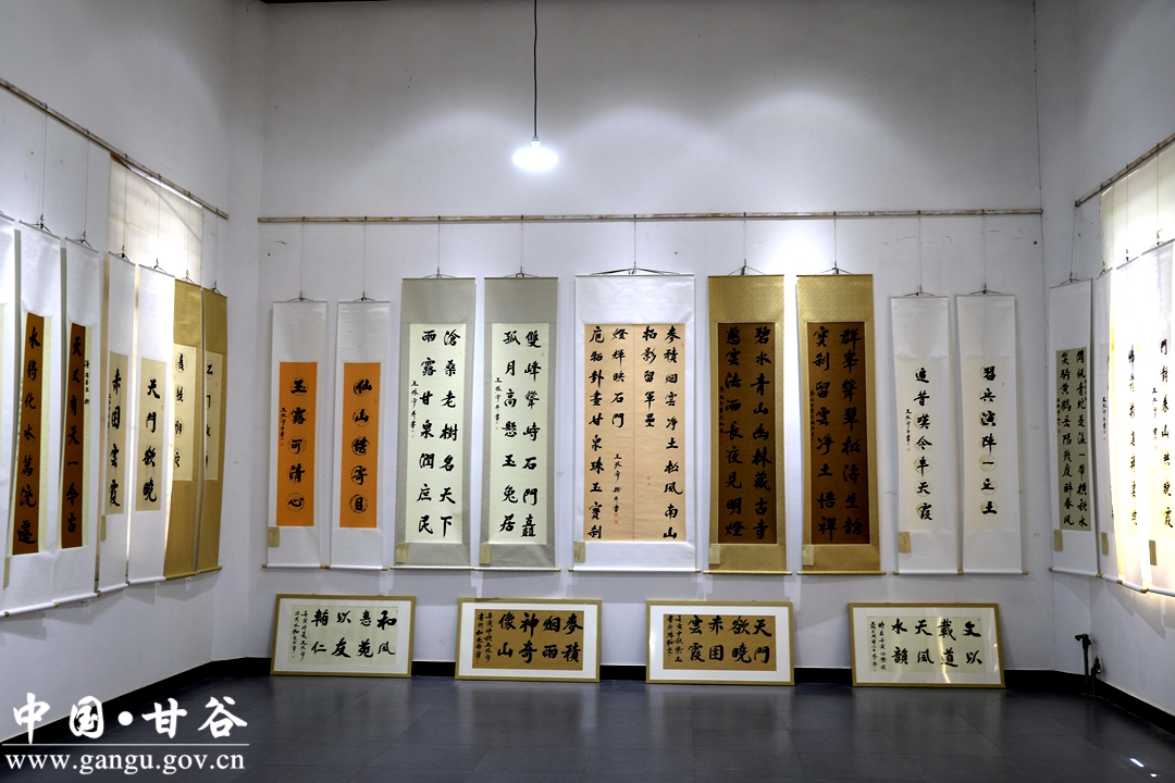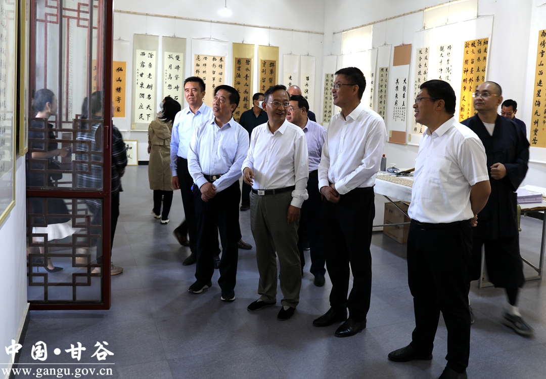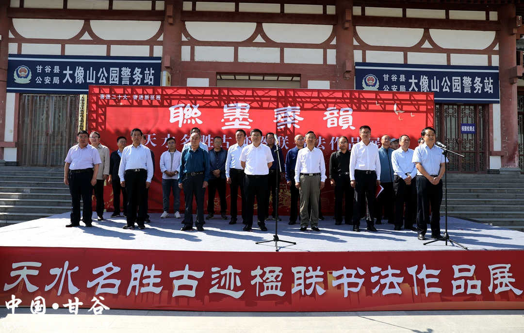 9月9日,由市政协书画院举办的“联墨秦韵”天水名胜古迹楹联书法作品展在甘谷县大像山主题公园游客服务中心开展。市政协副主席杨铁森,市政协一级巡视员王振宇,市政协二级巡视员郭世文,市人大常委会原副主任、市书协原顾问刘超,天水师范学院教授、天水师院诗书画院院长王正威,县委副书记、县长孙忠平,县政协主席曹明忠,县政协二级巡视员马骥,县政协副主席田小龙、蒋文出席开展仪式;省市楹联学会、省市诗词学会、市书协、市美协相关负责人,县政协机关干部职工,县文旅局及文化馆相关负责人,县文化旅游界、书画艺术界、新闻界代表人士参加仪式。