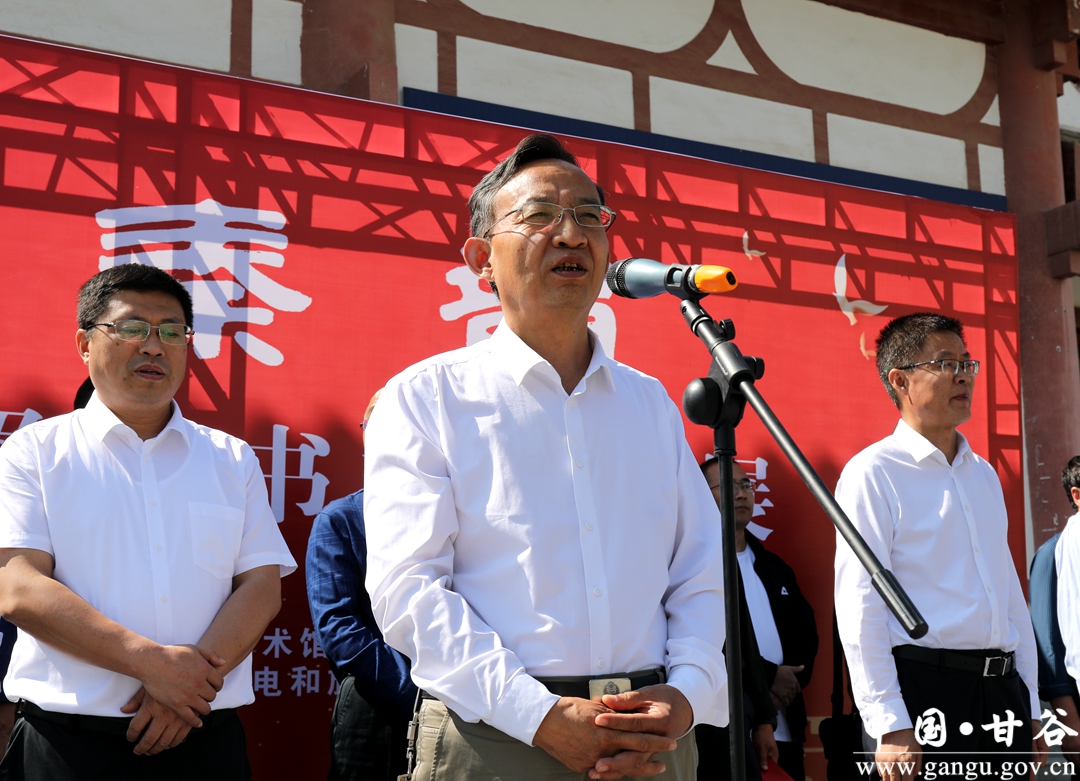 王振宇在致辞中表示,书画艺术源远流长,深受人民群众喜爱,具有良好的群众基础。希望广大书画家以更加饱满的热情,更加勤奋的努力,创作出更多更好的书画作品,为推动甘谷文化大发展、大繁荣做出新的更大的贡献。