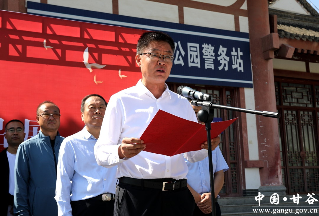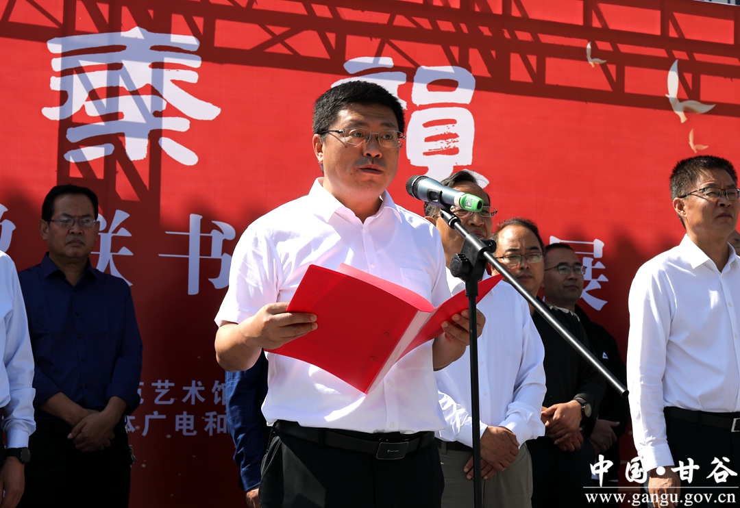 孙忠平代表县四大组织对出席开展仪式的各位领导、各位来宾、各界朋友表示诚挚的欢迎。他指出,近年来,甘谷县深入学习贯彻习近平总书记文艺工作重要论述,立足打造“一带一路”历史文化名城,坚定文化自信,坚持创新发展,通过书画艺术的形式,描绘时代精神风貌、反映社会发展变迁,大力弘扬古冀文化,不断扩大对外影响,全县文化软实力大幅提升,为加快县域经济社会高质量发展增添了活力、注入了动力。我们将以本次书画展为契机,主动把文化艺术融入经济社会发展各个方面,紧扣“三新一高”要求,聚焦全省“四强”“五量”决策部署和全市“建强副中心、走出新路子”发展方向,主动融入“一核三带”区域发展格局,抓改革、促发展、惠民生,统筹推进文化事业和经济社会高质量发展。同时,也恳请各位领导、各位来宾、各界朋友能够一如既往地关心、支持甘谷改革发展事业,多加指导支持、多提宝贵意见,帮助我们把甘谷的事情办得更好、把群众的生活品质提得更高,以优异的成绩迎接党的二十大胜利召开!