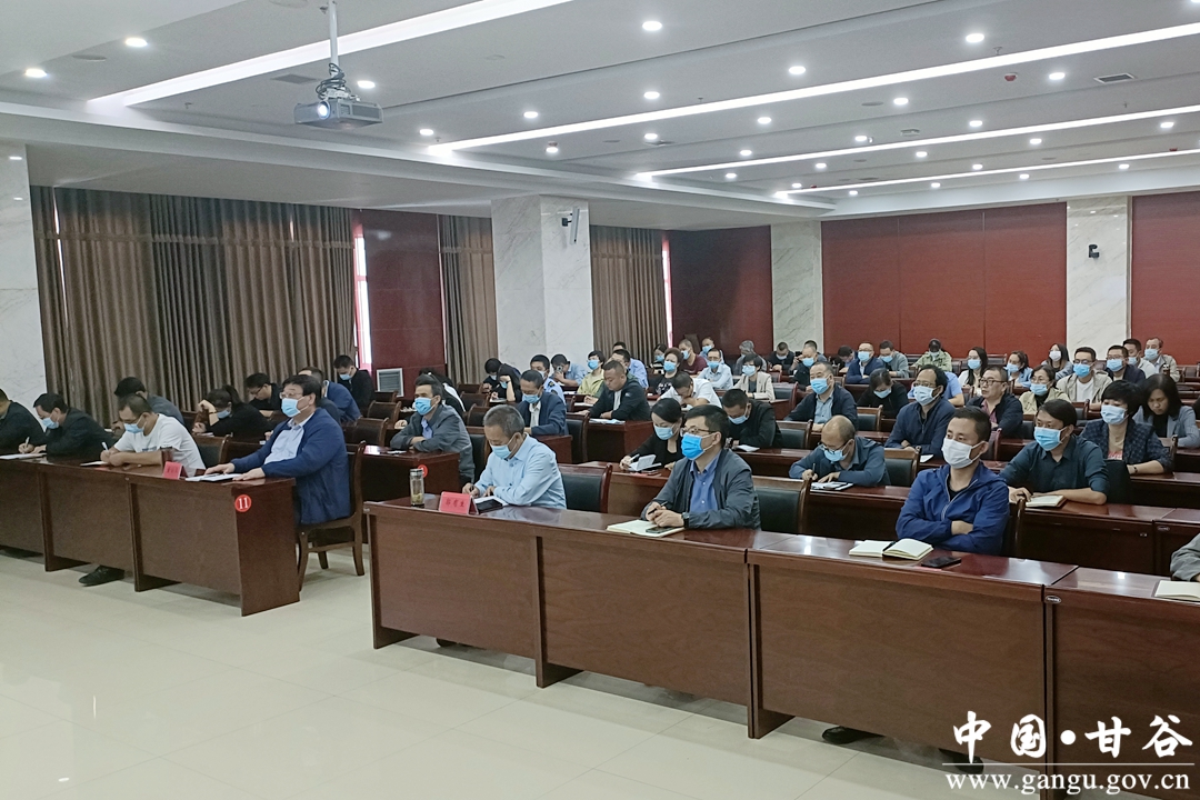 县人大常委会副主任董宝玉、县政协副主席郭有生在甘谷分会场聆听讲座。
