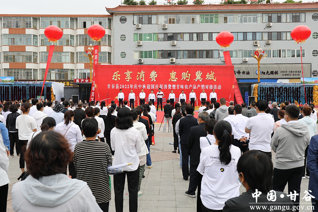 秋风送爽,硕果飘香。9月8日,甘谷县“乐享消费·惠购冀城”2022年庆中秋迎国庆促消费暨“甘味”农产品产销对接活动在大什字广场隆重举行。县委副书记、县长孙忠平致辞并宣布“甘味”农产品产销对接活动正式启动;市农业农村局副局长赵多长出席活动并讲话;市商务局副局长孙赟军宣读《庆中秋迎国庆促消费倡议书》;县委副书记林如海主持活动;县委常委、统战部部长王见学,县人大常委会副主任陈旭,副县长刘强,县政协副主席蒋文等市县领导出席活动;县直有关部门、部分乡镇干部职工代表,以及县内外部分农特产品企业、商贸流通企业、电商企业负责人共计500余人参加活动。