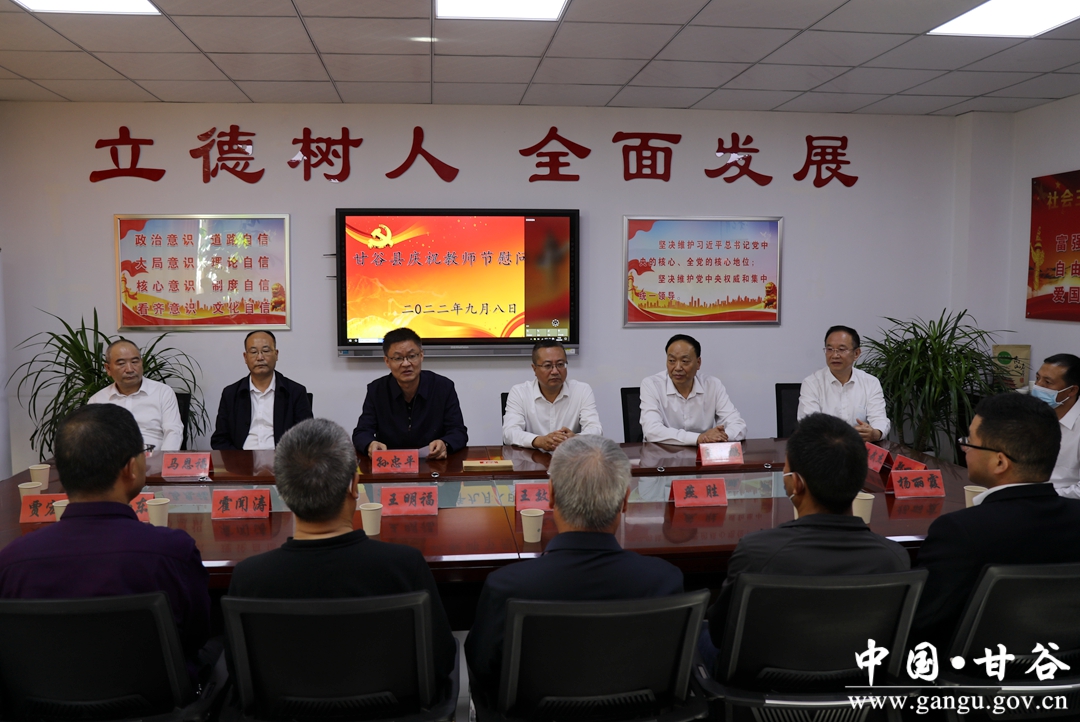慰问中,孙忠平与教师代表亲切交谈,详细了解一线教师的工作和生活情况,倾听他们对教育工作的意见、建议,感谢他们对全县教育事业作出的贡献。他说,教育工作肩负着国家和民族的希望,也承载着千万家庭的期盼,更关系着孩子们的成长成才。近年来,全县广大教师和教育工作者坚持立德树人、教书育人,默默耕耘、无私奉献,为甘谷高质量发展培养了大量优秀人才、作出了突出贡献。希望全县广大教育工作者要继续发扬优良传统、爱岗敬业、刻苦钻研、提升能力,做有理想信念、有道德情操、有扎实学识、有仁爱之心的“四有”好老师。