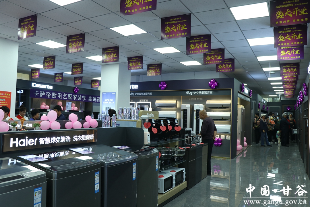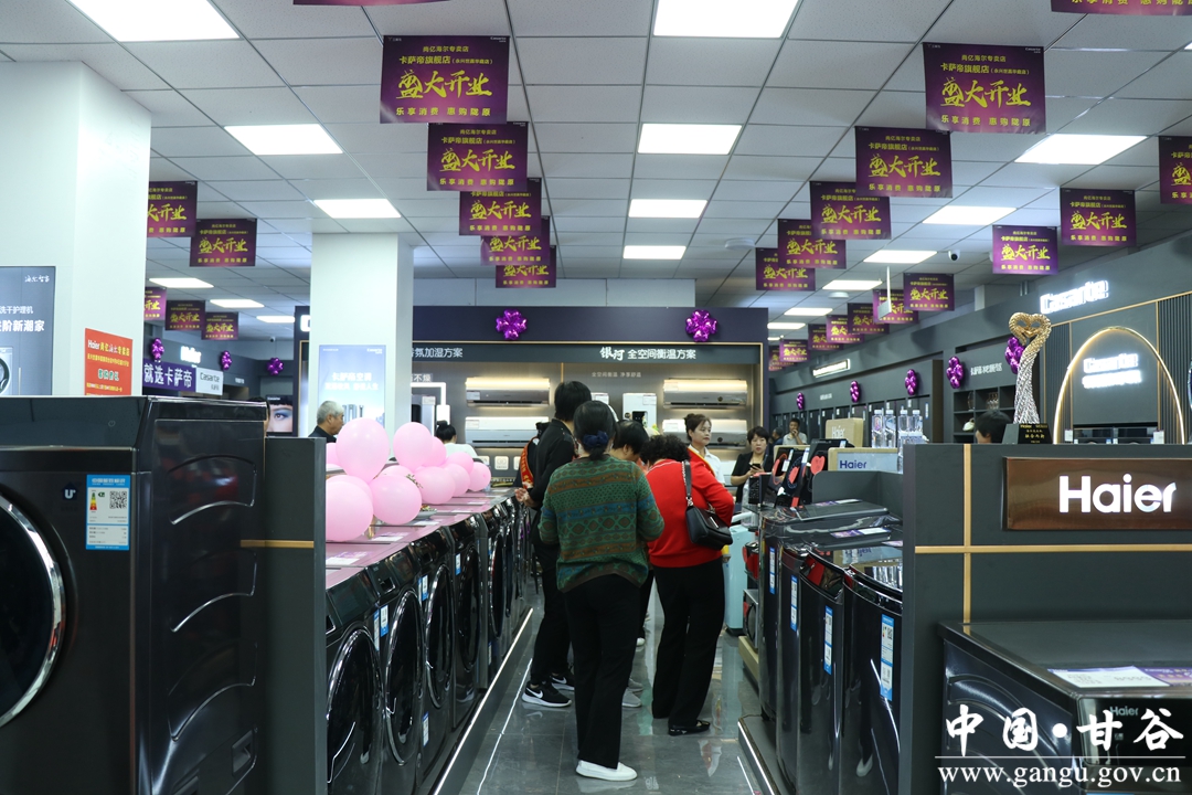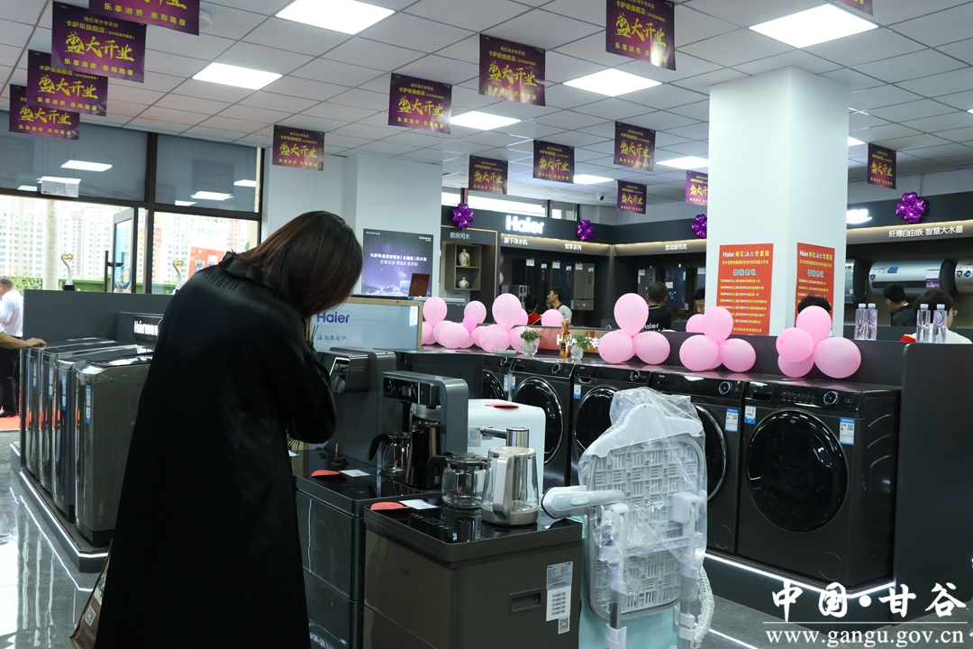 在甘谷县尚亿海尔专卖店永兴世嘉华庭卡萨帝店内,记者看到,大到彩电、冰箱,小到热水壶、电磁炉等各类家电琳琅满目,消费者正忙着挑选自己心仪的家电。中秋将至,商家特意推出了一系列优惠活动,来吸引顾客。