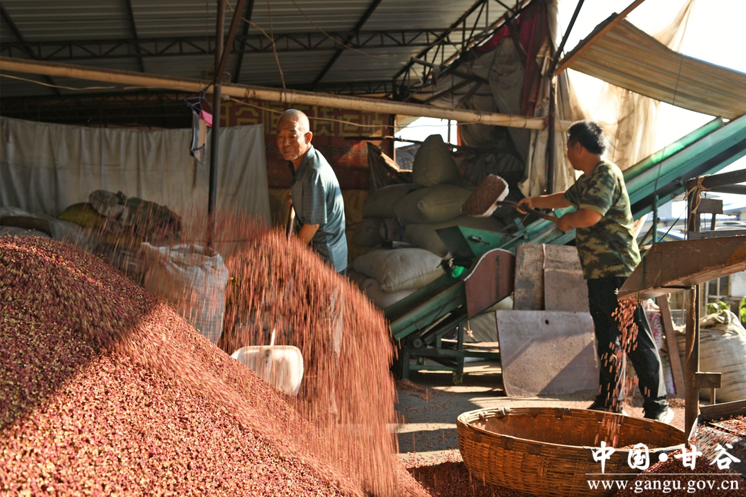 走进甘谷县花椒交易中心,一堆堆成交的鲜红花椒让空气中弥漫着浓郁的椒香,椒农们围着三轮车上的花椒与客商讨论着交易,不少商贩来回踱步,挑选卖相和价格中意的产品,交易场面热闹非凡、秩序井然。在蒋老四的花椒初加工车间里,工人们正忙着将初筛后的花椒装袋封包。