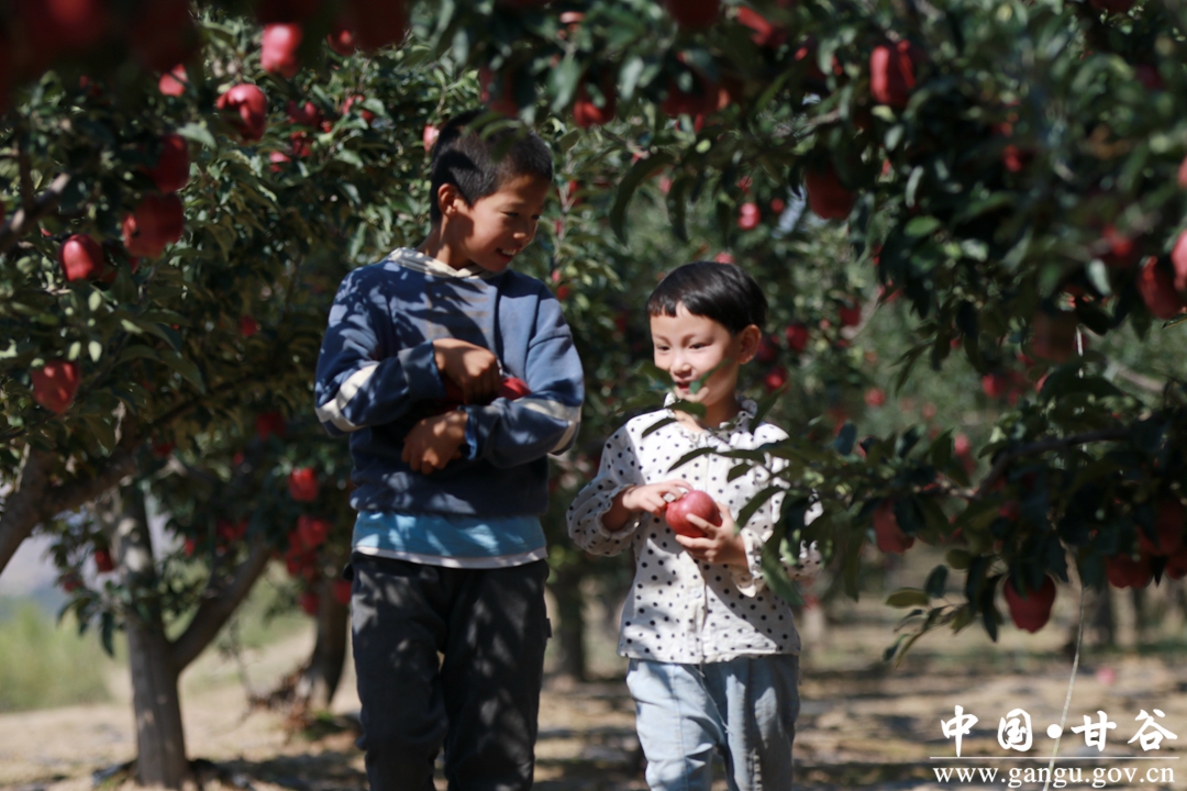 甘谷,素有“中国苹果之乡”的美誉。苹果栽植面积广,是当地农业主导产业之一。在苹果基地的采摘园内,一排排的苹果树枝繁叶茂,茁壮成长;一个个饱满成熟,红彤彤的苹果挂在枝头。摘一个,捧到手里,再咬一口,薄薄的皮,脆脆的肉,那香甜,那细腻,那清爽,那真的是一种享受。果园里,摘苹果的工人们一张张洋溢的笑脸,都弥漫着丰收的喜悦。