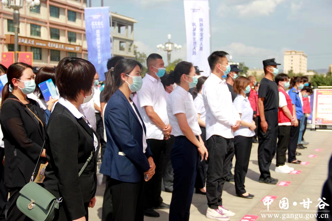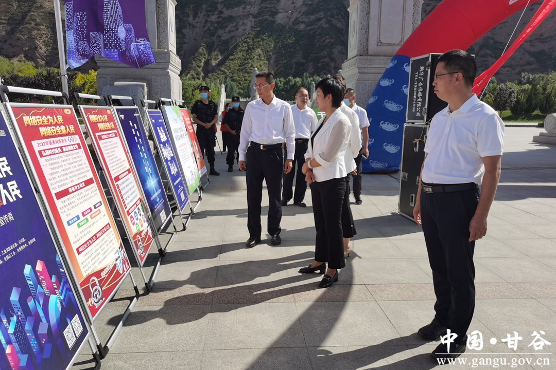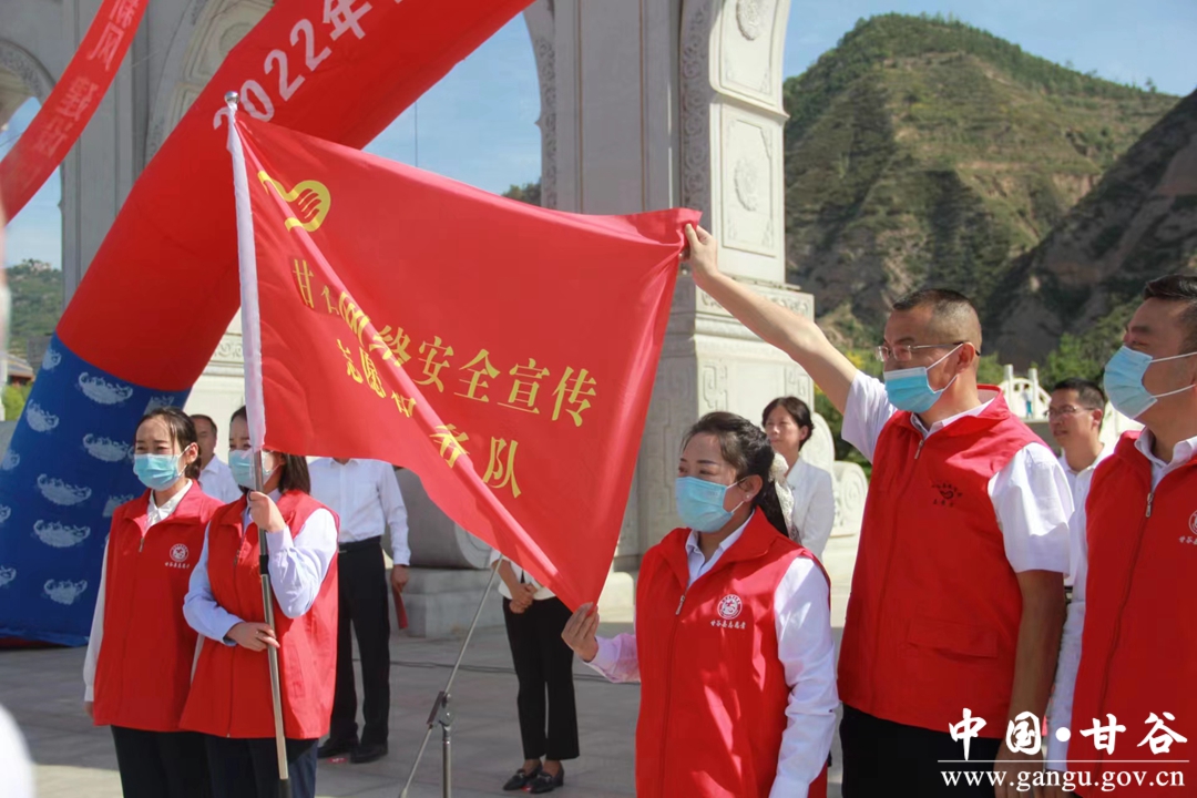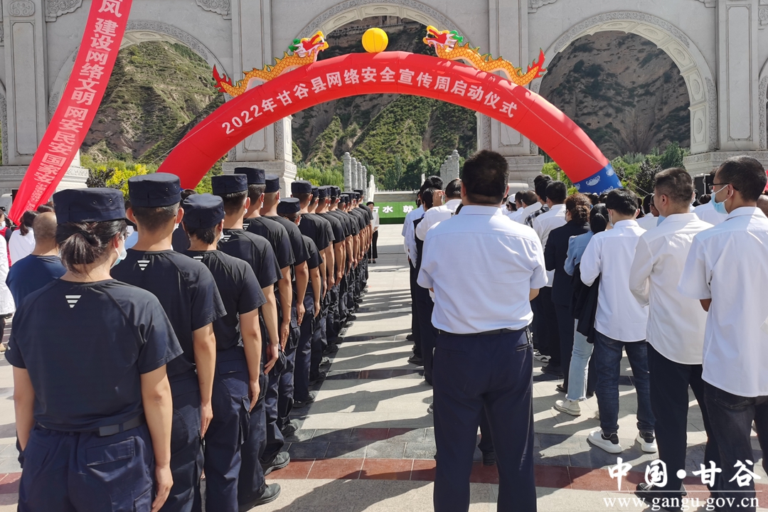 9月5日,2022年甘谷县网络安全宣传周启动仪式在大像山公园举行。县委常委、宣传部部长范慧为甘谷县网络文明志愿者服务队授旗并宣布2022年甘谷县网络安全宣传周活动启动。县人大常委会副主任杨晓涛,副县长、县公安局局长张涛,县政协副主席魏杰出席启动仪式。全县各党政部门、公安系统、医疗卫生系统、金融行业、电信行业、大像山镇等部门单位干部职工共计200余人参加启动仪式。