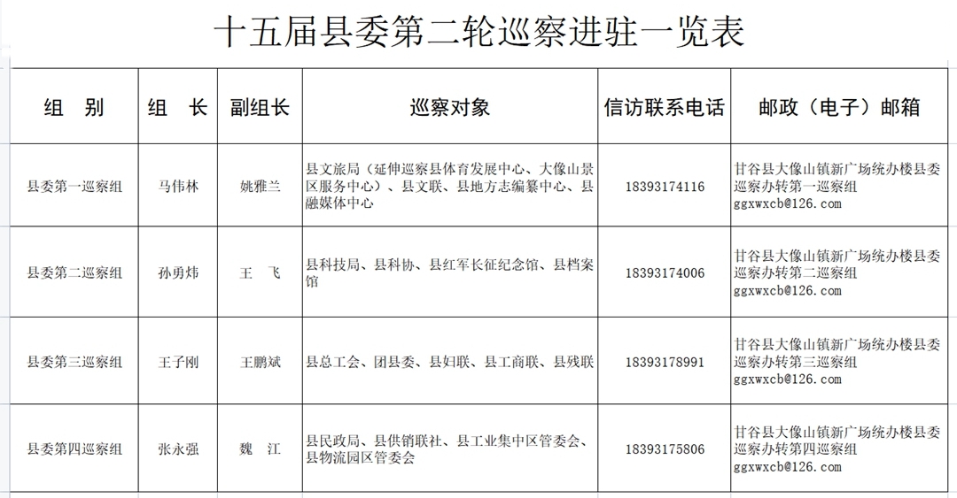 根据县委关于巡察工作的统一部署,近日,十五届甘谷县委第二轮巡察的4个巡察组完成巡察进驻工作。