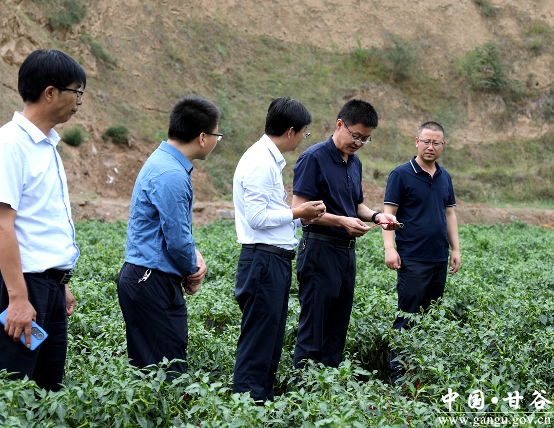 在大石镇牛川村麒麟西瓜种植项目、礼辛镇尉坪村辣椒种植基地、礼辛镇南山片区中药材种植基地,孙忠平深入田间地头,仔细询问生产结构、种植面积、地租市场和农户收益等情况,并实地察看土壤墒情、农作物长势和抗旱措施,实地调研指导抗旱保丰收工作。