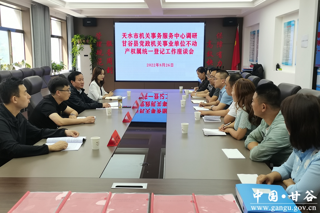 8月26日,市机关事务服务中心副主任张怀中带领调研组深入甘谷县开展党政机关事业单位不动产权属统一登记调研督导工作。