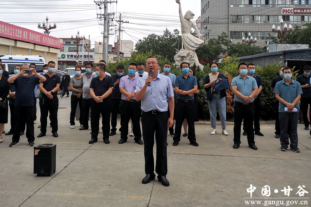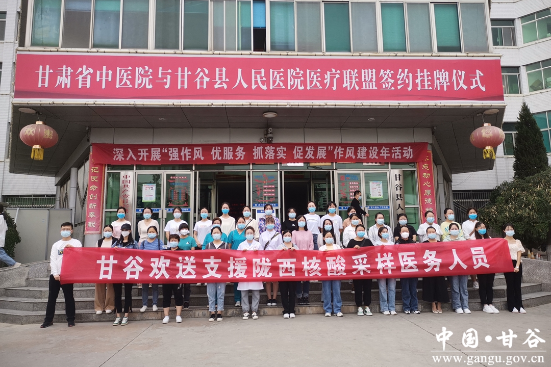 8月26日,甘谷县举行欢送支援陇西核酸采样医务人员出征仪式,40名医护人员肩负县委县政府的信任和重托,奔赴抗疫前线。副县长刘强出席出征仪式并作了动员讲话。