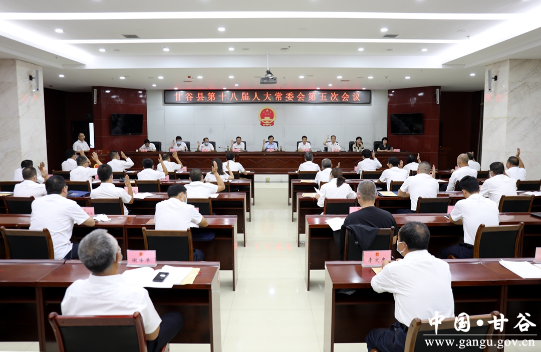 8月26日,甘谷县第十八届人大常委会召开第五次会议。县人大常委会主任杨帆,县人大常委会副主任陈旭、王新民、杨晓涛、董宝玉出席会议。县人大常委会副主任薛希武主持会议。