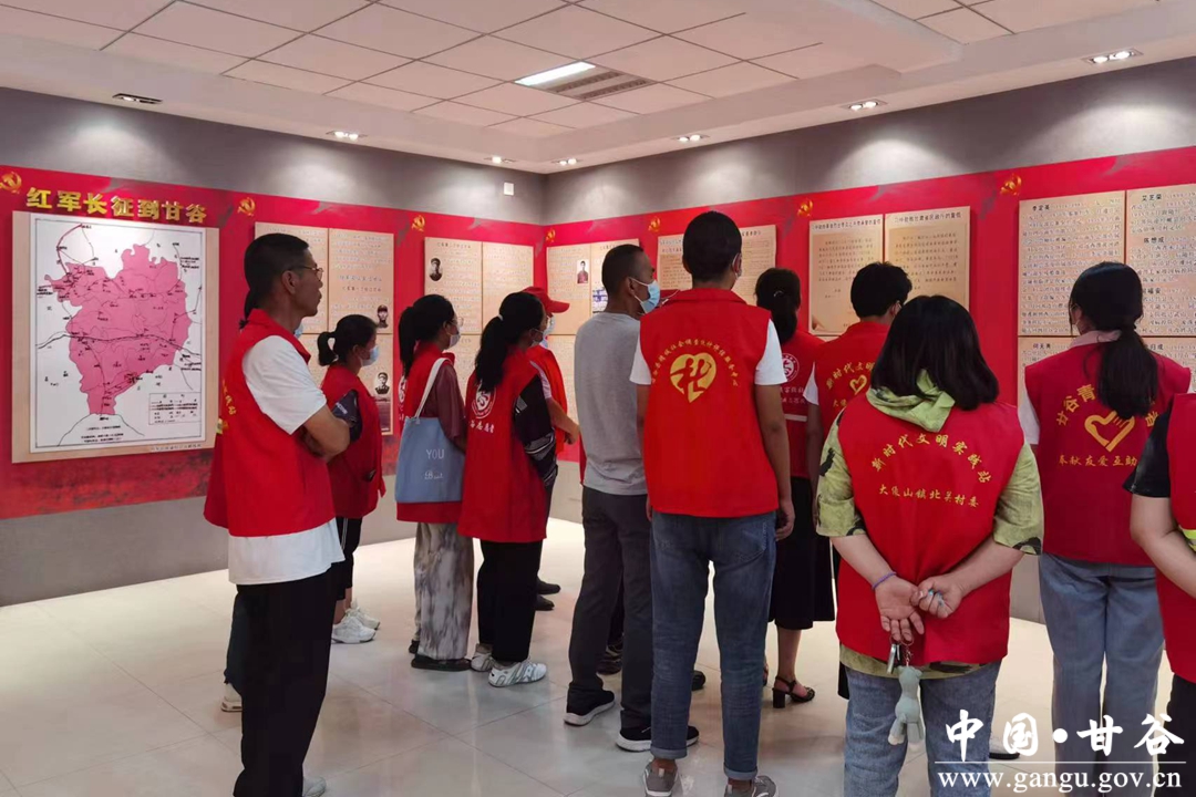随后,志愿者们先后参观了文化馆、博物馆、图书馆和红军长征纪念馆等爱国主义教育实践基地,开展了社会主义核心价值观宣传教育主题实践活动。大家认真聆听讲解员讲述了红军长征五过甘谷的种种英勇事迹;认真了解每一件文物和展品,加深对家乡文化的了解;认真回顾百年来甘谷人民在中国共产党的领导下,砥砺前行、共同拼搏,感慨城乡面貌发生的巨大变化和群众生活呈现的崭新变化。