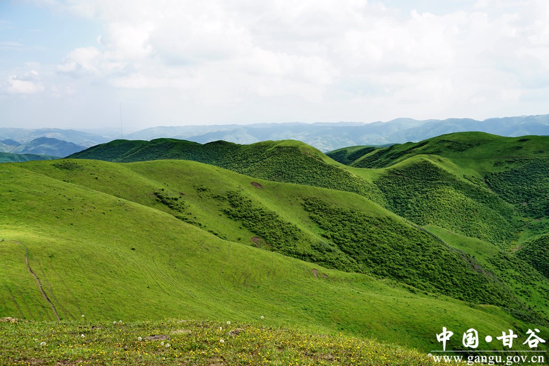 古坡草原,属国家3A级旅游景区。位于甘谷县古坡镇南部山区,地处礼县、秦州、甘谷和武山四县交界处,又称“四县梁”,系秦岭山脉西延余脉,平均海拔2238米,年均气温7.4℃,距甘谷县城45公里,境内有天然牧场14万亩,以草原风景为主,有成片的天然次生乔灌木,森林覆 盖率达52.1%,域内物产丰富,牛羊满坡,是秦人早期为周王朝牧马的草原之一,是天水母亲河藉河的源头地,也是长江和黄河流域的分水岭。域内还留有1936年10月红二方面军长征途经时的众多红色印记和红色故事。