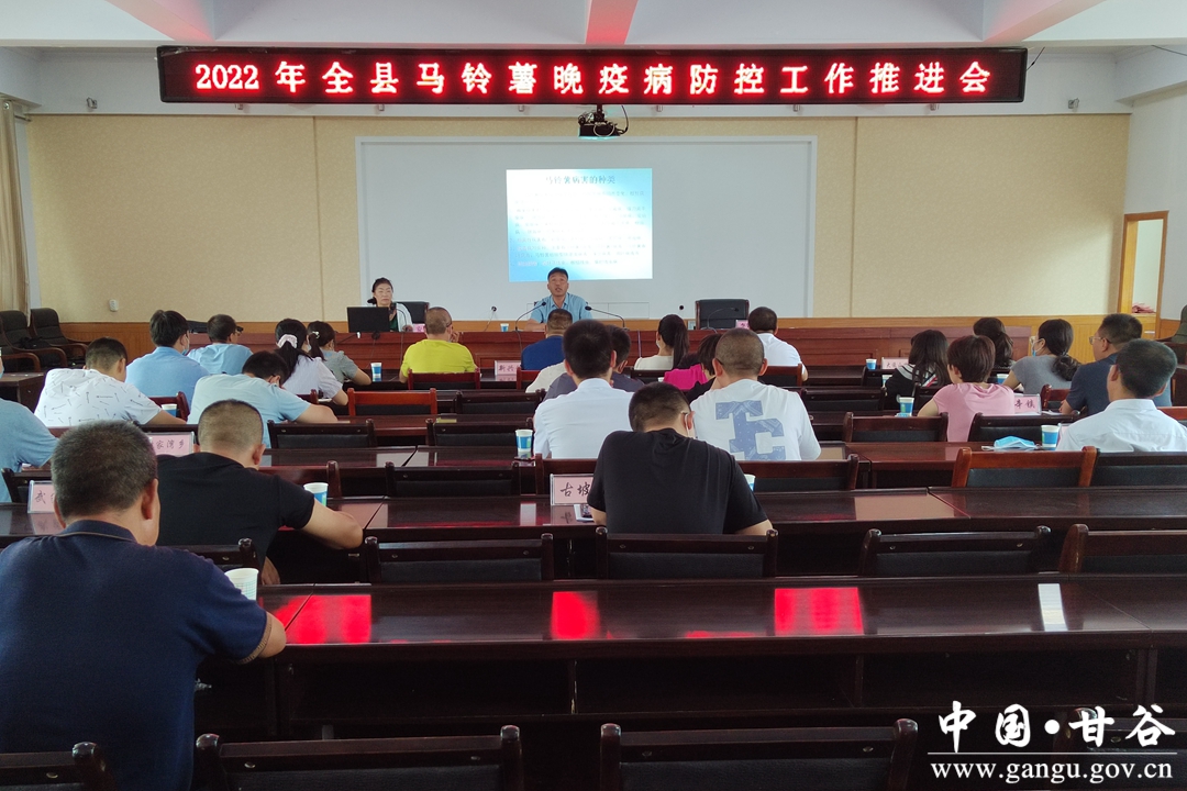 8月18日,甘谷县农业农村局组织召开马铃薯晚疫病防控工作推进会。各乡镇分管乡镇长、主办干事、各植保监测设施管护人员和县农技中心专业技术人员共计50余人参加了会议。