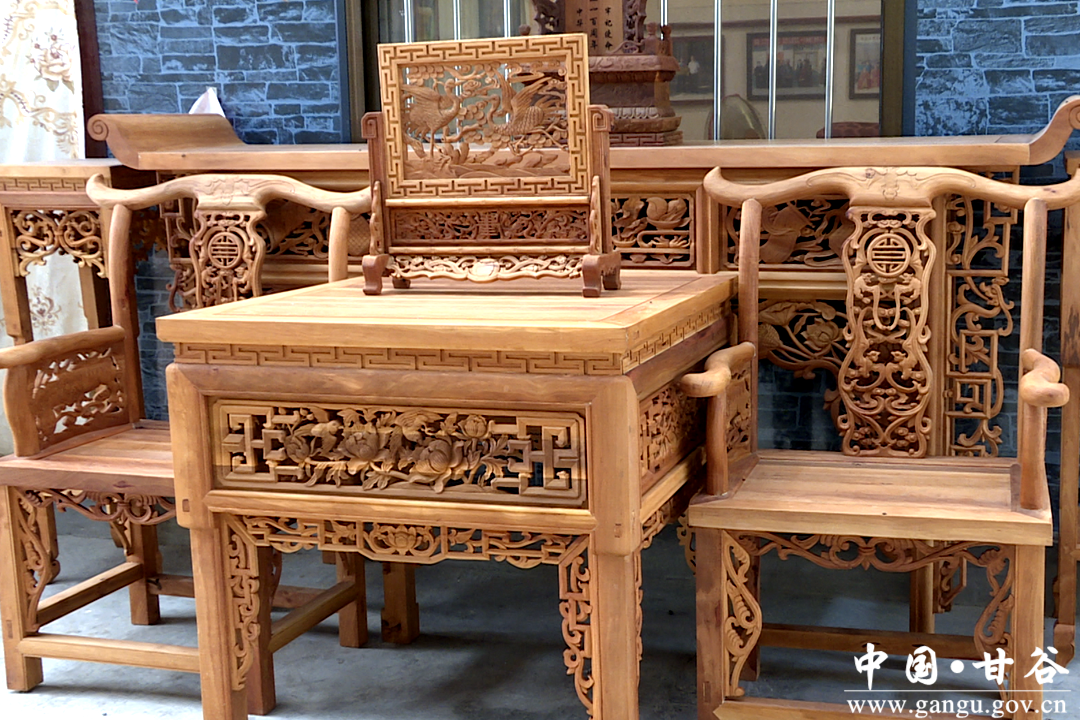 甘谷县磐安镇四十铺的神艺木雕厂负责人宋伟强说,甘谷的木雕它主要以线条表达为主要的方式,以线与线的连接表达出一个作品,经过近10多年的持续发展,经过甘谷木雕大师们的拼搏,以及从南方这边也接触学习了新的技术。