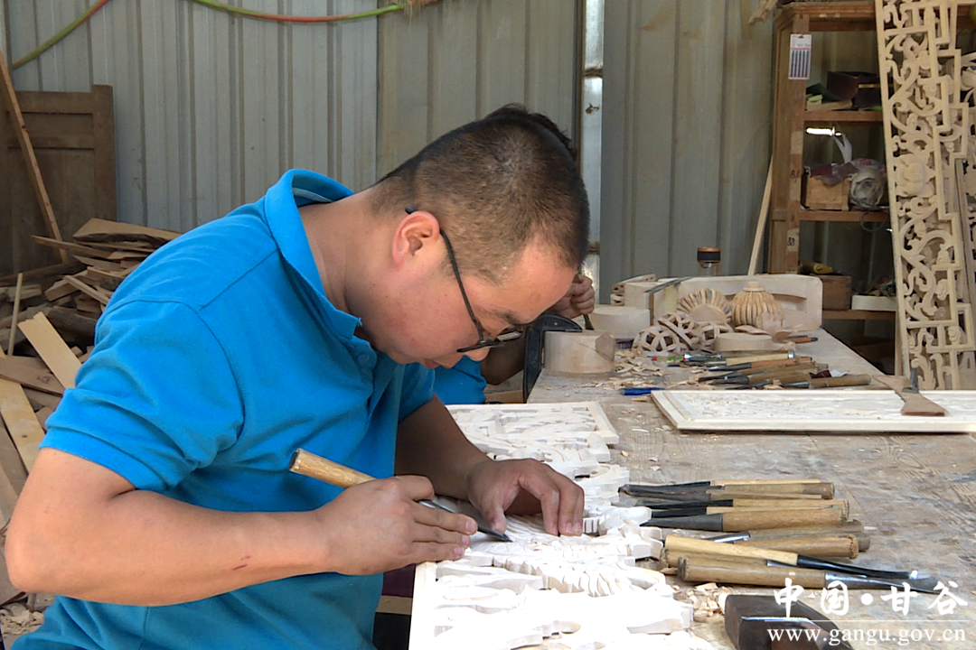 甘谷自古就流传着古老的木雕技艺,亭台庙宇、村宅民居处处可见精雕细镂、巧夺天工的木雕工艺品。在这片土地上藏匿着许多以木雕为生的能工巧匠,甘谷木雕县级非遗传承人宋伟强便是其中一位。