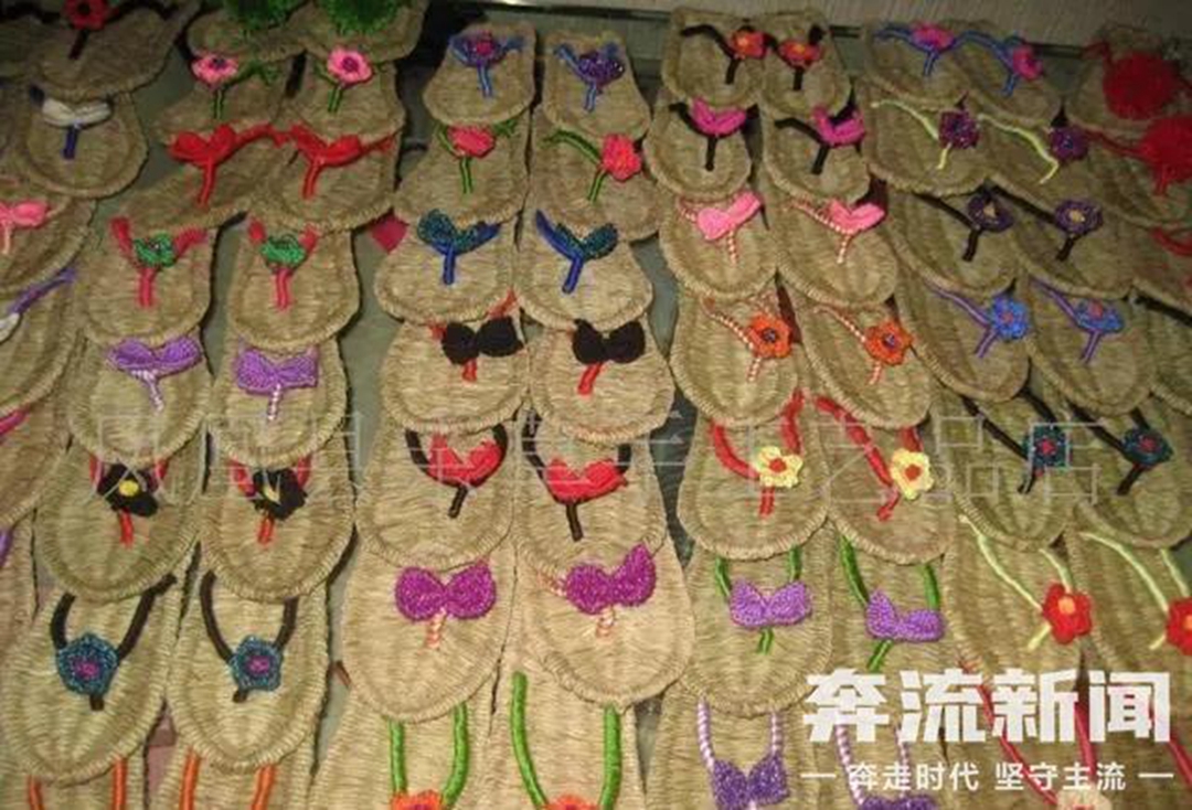 原生态的,纯手工的麻鞋作品惹人喜爱,比如说脚尖顶端是红色麻穗的“慈母思亲”,寓意姜维随诸葛亮远征,母心思儿当归;“单鞭救主”源自尉迟敬德以一支钢鞭救其主李世民的唐代故事;还有“虎目圆睁”等等。