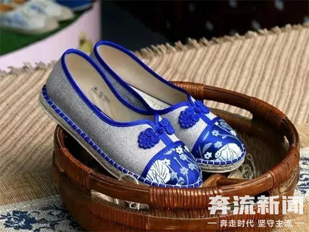 手工业者还要用一种专门用来编织的钩针,钩出麻花辫鞋面和鞋耳,做工前备染。制作时,先将大青麻编成辫,然后将麻辫置于平案,立辫状盘鞋底,盘成麻丝紧密的“千层底”,再用麻绳穿紧左右,固定鞋底;最后用编织钩针钩出麻花辫鞋面、鞋耳、鼻梁,组合时用木楦把鞋撑起来,帮梁、鞋耳、鼻梁贯穿耐力麻绳,鞋就做好了。