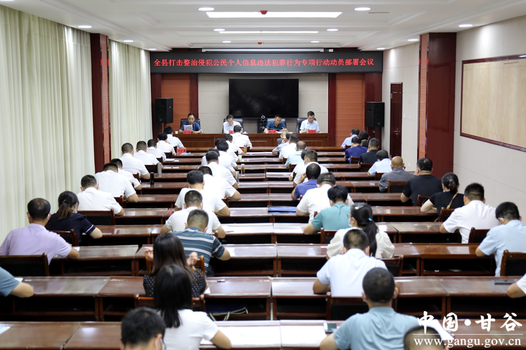 8月4日,甘谷县召开打击整治侵犯公民个人信息违法犯罪行为专项行动动员部署会议。县委常委、政法委书记杜兴出席会议并讲话;副县长、公安局长张涛主持会议;各乡镇主要负责人、政法委员、综治中心主任,相关责任单位负责人参加会议。