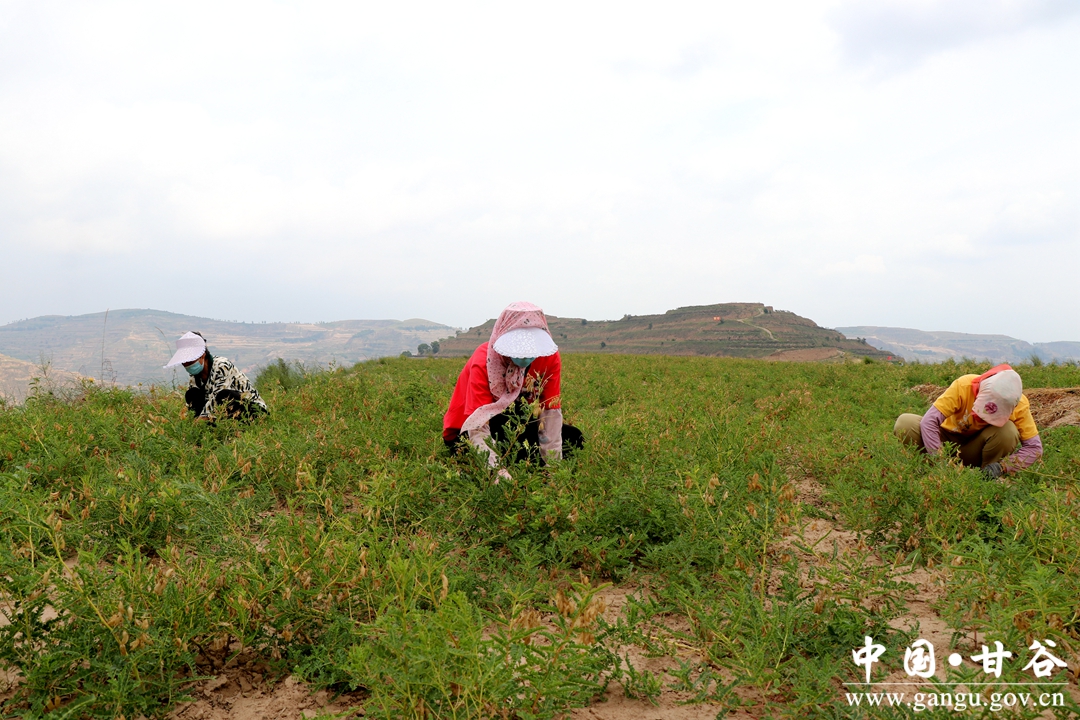 每年的五到七月,是甘谷县礼辛镇北山片区中药材地里除草的时节。受疫情的影响,今年的除草工作延迟了一段时间。随着生产的恢复,玉顺种养农民专业合作的工人们也抓紧时间进行田间管理。