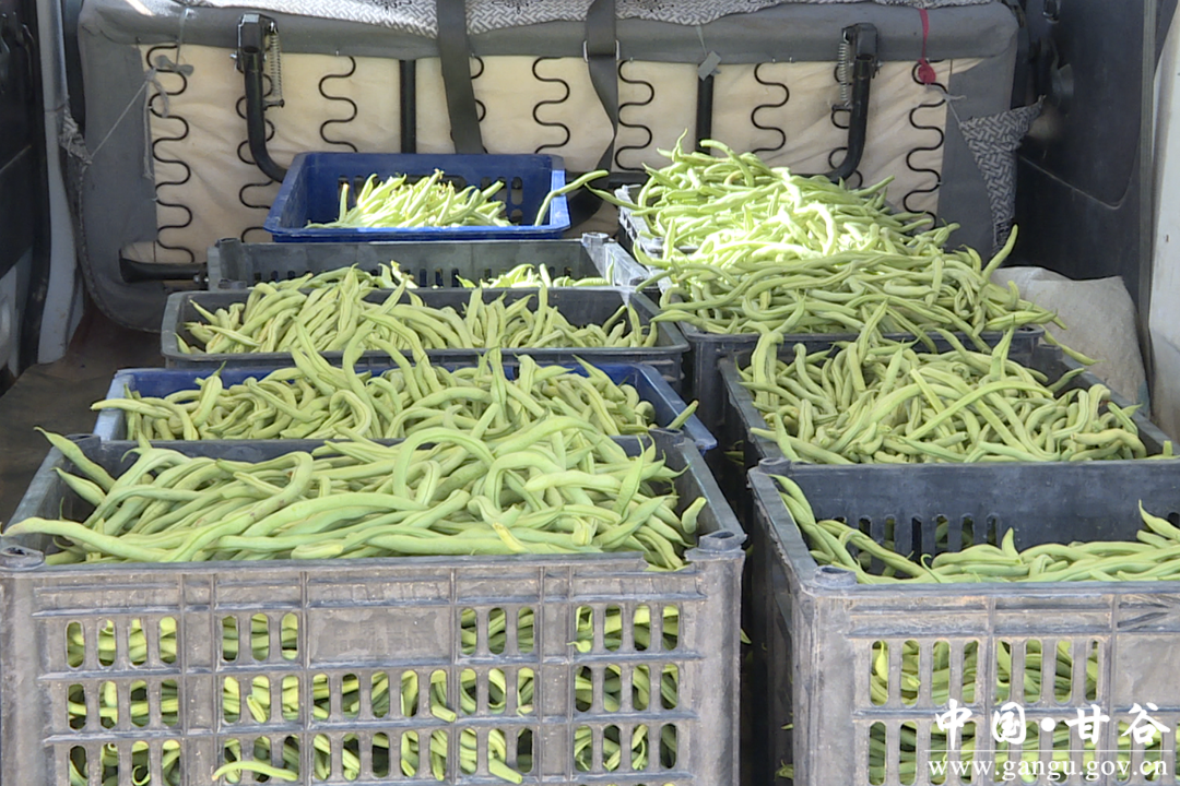 甘谷县宏鼎源盛种养农民专业合作社负责人赵志勇说,今年种植架豆王800亩,现在头茬正在采摘,每天有磐安的客商上门收购,有部分是咱们自己送到甘谷蔬菜市场。
