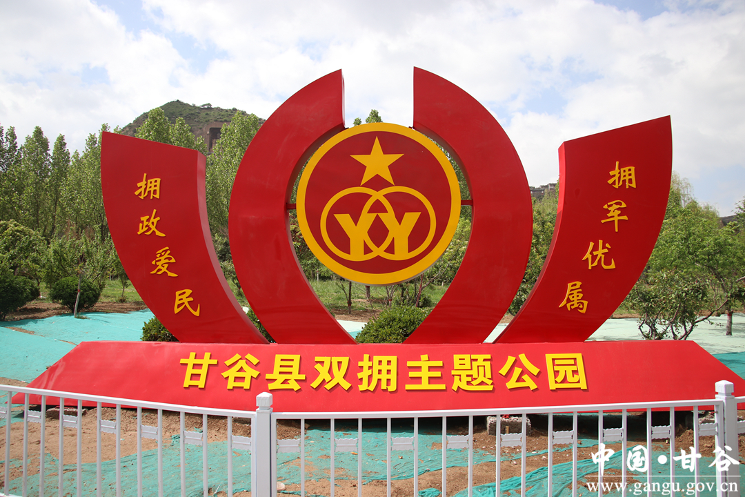 走近甘谷县双拥主题公园标志处,印入眼帘的双“Y”标识在五角星的照耀下熠熠生辉,双“Y”分别意为拥军优属、拥政爱民,二者相互环绕,生动诠释了军民共建、军民融合、军民鱼水一家亲的“双拥”内涵。