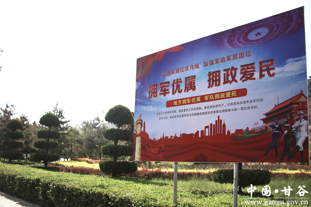 为进一步巩固发展新时代军民团结,弘扬拥政爱民、拥军优属的光荣传统,甘谷县双拥办、住建局依托水上公园资源优势,结合实际建造了以宣传双拥工作为主题的双拥主题公园,目前已正式亮相并投入运营。