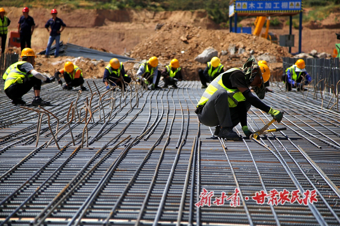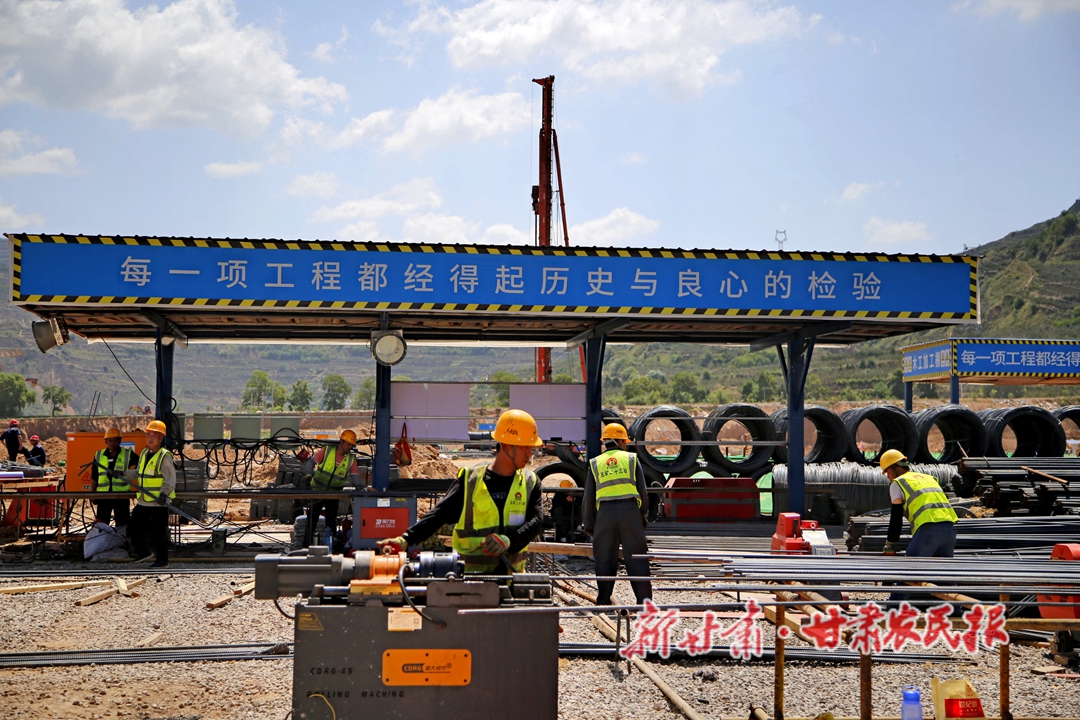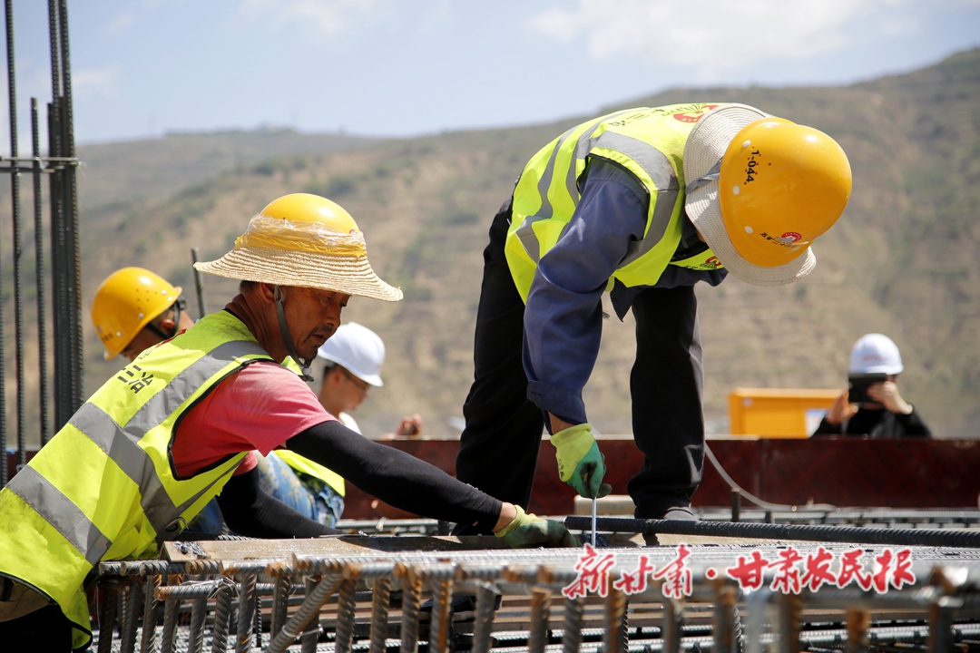 炎炎烈日,热浪侵袭。在甘谷县杰瑞10万吨锂离子电池负极材料项目建设现场,工人们挥汗如雨斗酷暑,娴熟地下料、焊接,上高架、钻架底,一片火热的忙碌场面。