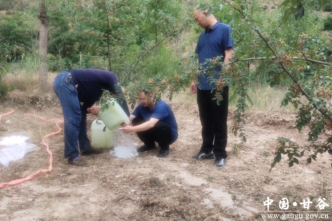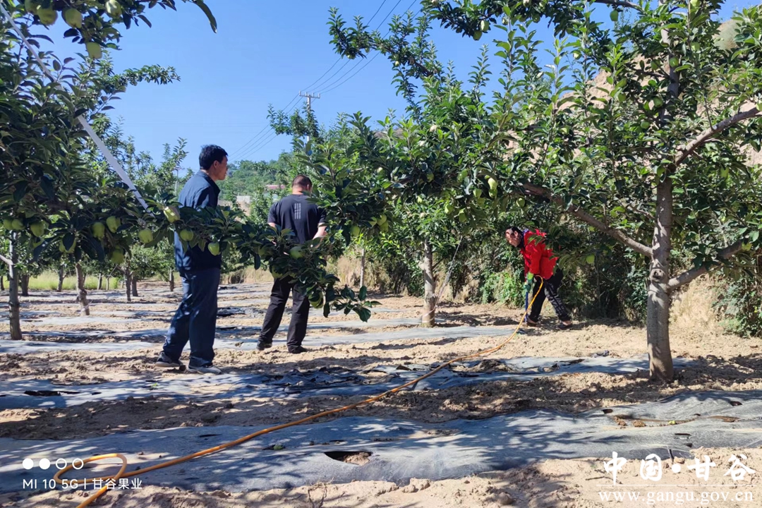 据了解,今年5月以来,甘谷县气温偏高,降水偏少,土壤蒸散耗水加剧,土壤失墒严重。6月下旬后,随持续高温天气的出现,果园旱情进一步加剧。为减轻旱情对果品产量品质的影响,甘谷县果品产业服务中心针对不同果树提出了防旱应对措施,一方面下发各乡镇、果树种植企业、合作社和广大果农予以实施,一方面组织技术人员分赴全县重点镇村果园,开展现场培训,进行技术指导,与群众一起开展果树抗旱工作,以减轻干旱对果树生产的影响。