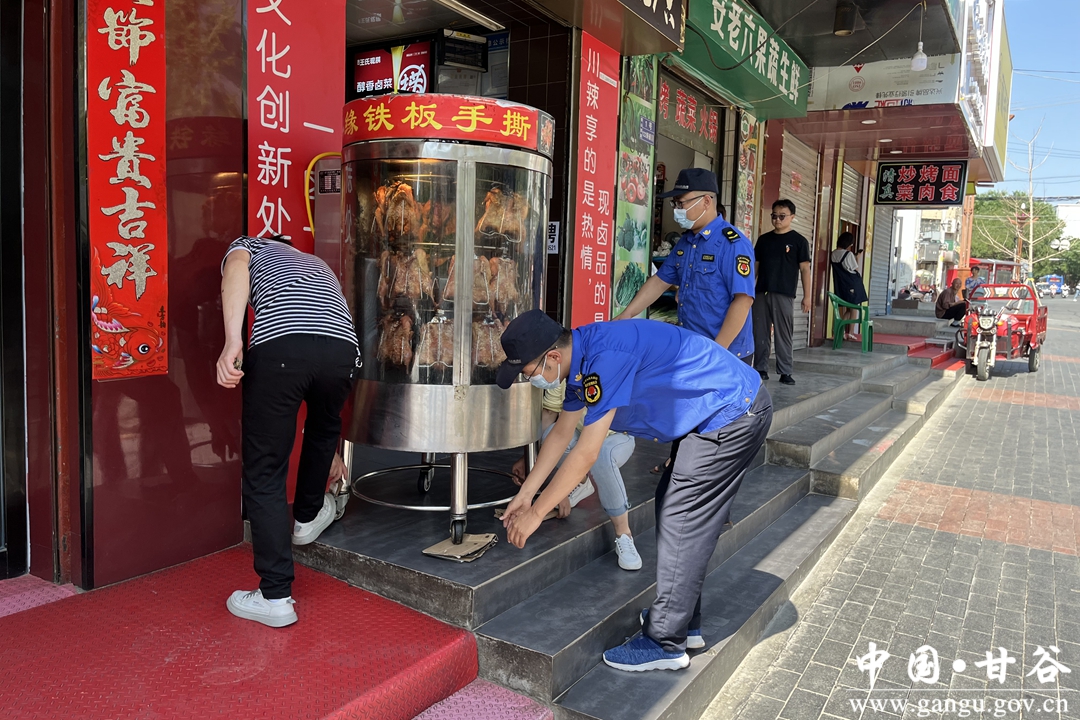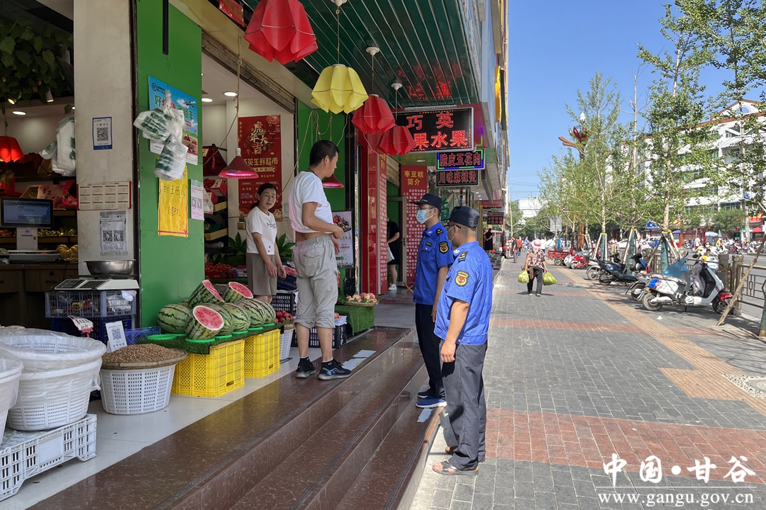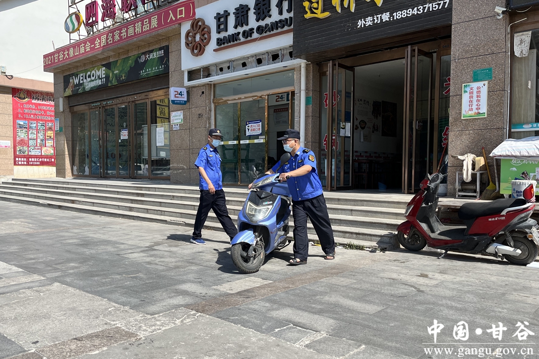 上午11点,气温已经上升到了30度。甘谷县城市管理行政执法局一中队队长李光年和同事穿行在街巷间,一会处置一起店外经营,一会将路边停放的电动车摆放整齐,工作虽然琐碎,李光年他们干得却非常认真。他说,发现一处乱掉乱挂,店外经营的城市乱象,处理一处,这样的话我们的城市就干净一处,一点一滴为广大群众营造良好的居住环境。