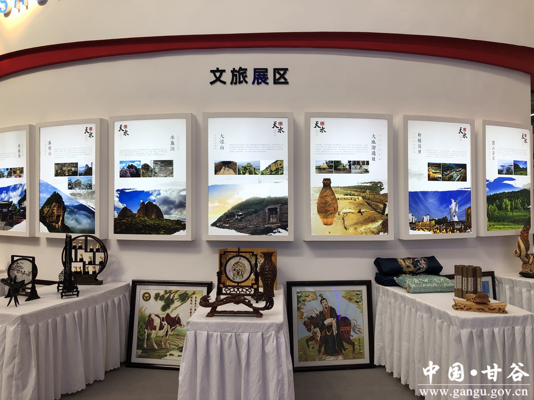 第二十八届兰洽会天水主展馆位于甘肃国际会展中心二楼,总面积252平方米,展馆搭建秉承“开放、创新、绿色、发展”的宗旨,聚焦建设区域中心城市和打造“五区”、建设“五中心”的具体目标,采用声、光、电及LED电视墙等有效载体,突出电子信息、文化旅游等产业,以招商引资宣传、贸易洽谈功能为主,全面展示我市区位条件、资源禀赋、产业优势和发展潜力。本届兰洽会期间,我市共组织27家企业的130多种商品在时尚消费品和“甘味”农产品展区销售,主要包括雕漆、竹编、汉唐陶艺、根雕、鸳鸯玉、刺绣、麻鞋、剪纸、瓷器、庞公石、掐丝珐琅工艺品等文创产品和果汁、水果、粉条等农副产品。其中甘谷县展示展销文旅产品木雕、麻鞋和酒类等50多个品种。