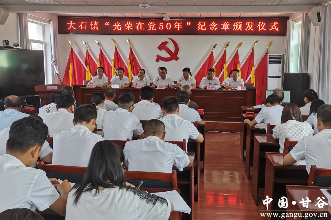 会上,党委委员、党建办主任张文语宣读了《中共大石镇党委关于接纳赵虎军等15名同志为中共预备党员的通知》,党委书记杨瑞泉领誓,新党员代表宣誓,其他党员重温入党誓词。镇人大主席刘云云宣读了《中共大石镇党委关于颁发“光荣在党50年”纪念章的决定》,镇主要领导为7名“光荣在党50年”的老党员代表颁发了纪念章,向为党的事业奋斗终身的老党员们表达崇高的敬意和诚挚的感谢。党委副书记张宏斌宣读了《中共大石镇党委关于表彰优秀共产党员、优秀党务工作者、先进基层党组织和乡村振兴先进个人的决定》,对优秀党务工作者、优秀共产党员、先进基层党组织、乡村振兴先进个人进行了表彰,镇班子成员分别为受表彰集体和个人颁奖,并对获得表彰的先进个人和基层党组织表示衷心的祝贺。