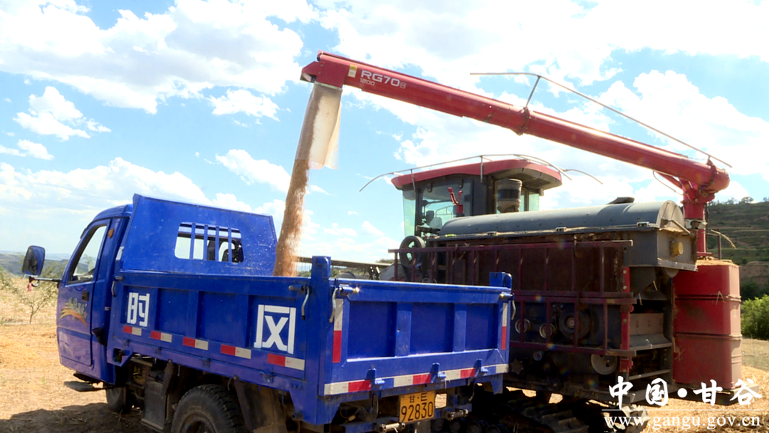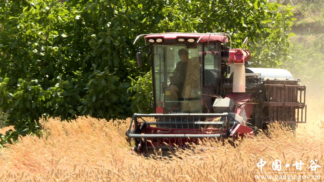 甘谷县农技中心主任苟宏伟说,针对当前时令季节,我们从外省调用联合收割机120余台跨区作业,加快小麦收获进度。目前,已收获小麦17万亩,占全县33万亩的百分之53,预计7月底将全面完成收获任务,做到应收尽收,颗粒归仓。