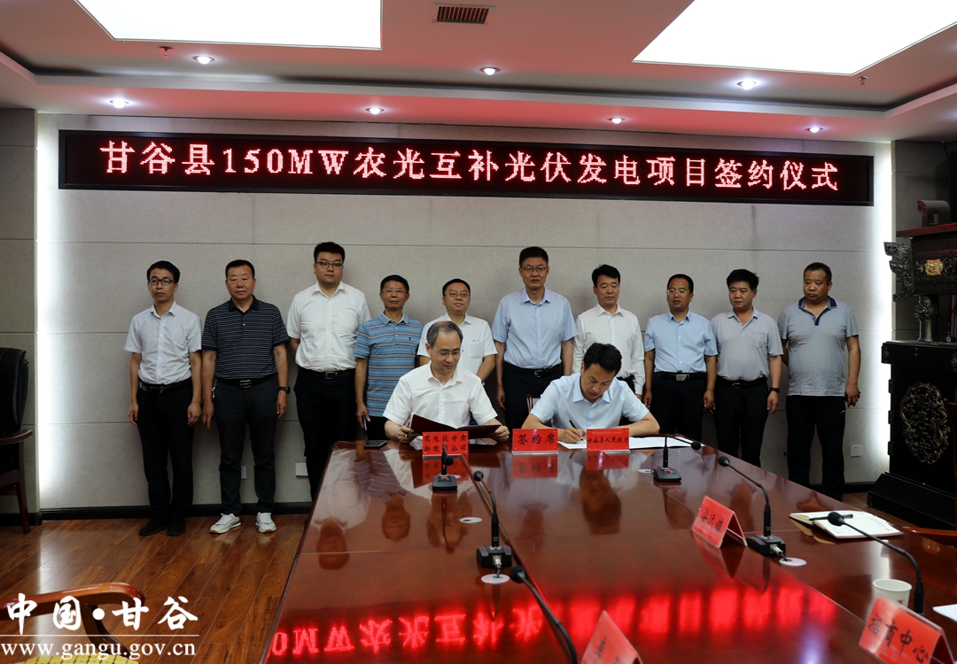 6月29 日,甘谷县召开150MW农光互补光伏发电项目签约仪式。国家电投集团甘肃新能源有限公司党委委员、副总经理江建平,县委副书记、县长孙忠平出席签约仪式,县委常委、副县长张恒刚主持签约仪式。