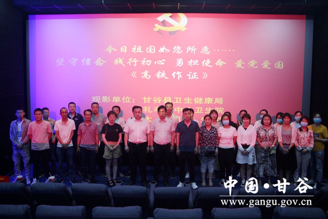 为进一步加强爱国主义教育,厚植爱国主义情怀,坚定党员干部理想信念,加强品德修养,6月24日,甘谷县卫健局联合礼辛镇中心卫生院、大庄卫生院,组织干部职工观看电影《高铁作证》。
