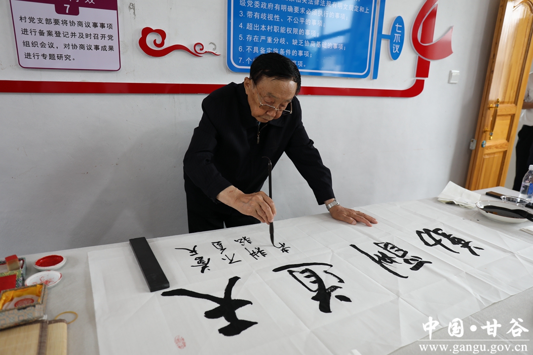 活动中,为雒家村今年参加高考的雒心茹等6名优秀学生颁发了奖学金,天水市秦州区环境卫生治理服务中心向雒家村捐赠环卫工具一批并交接了捐赠清单,天水市天水湖景区管理处党支部、天水市秦州区环境卫生执法中队党支部对雒家村老党员进行了慰问,随后参加活动的将军进行了书法交流。