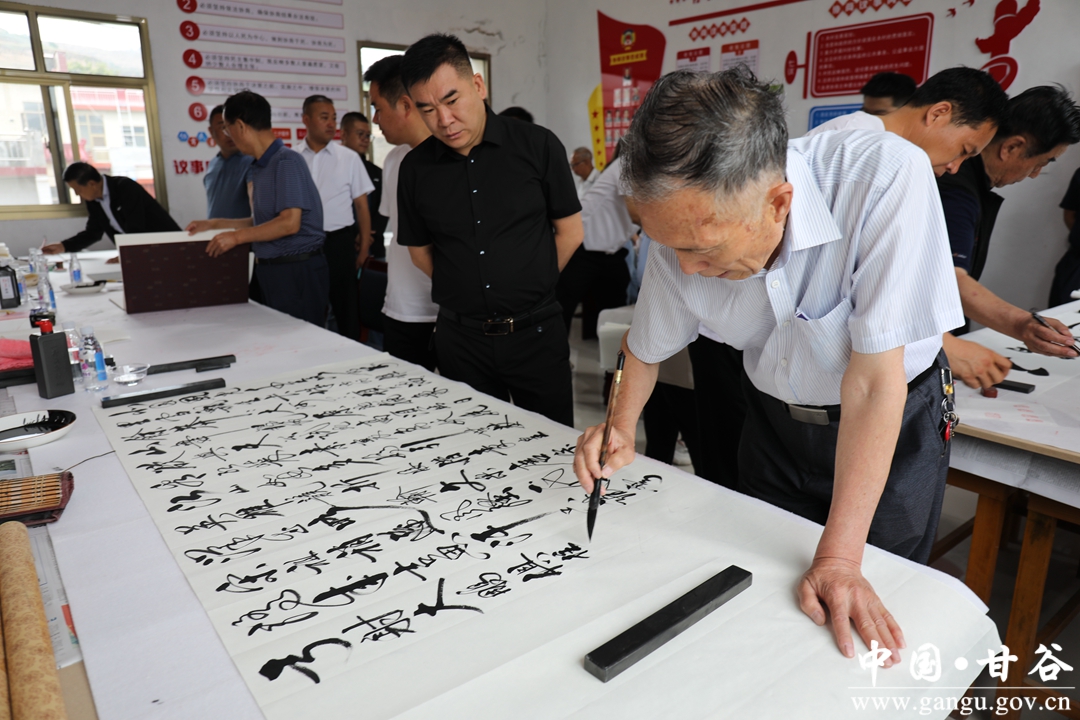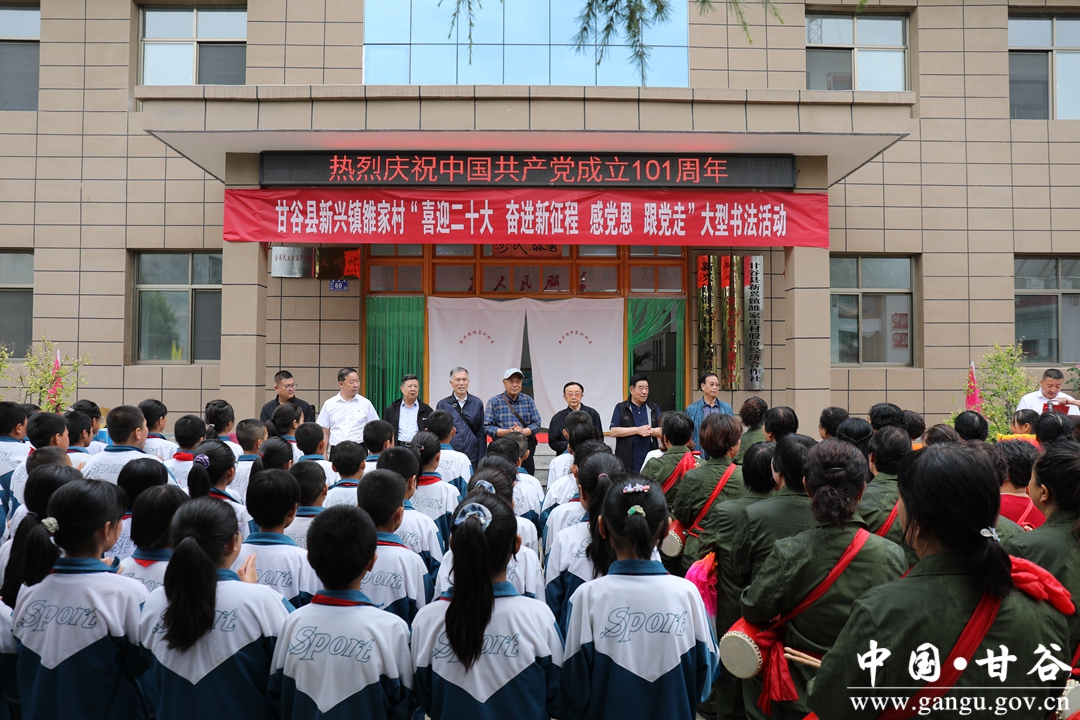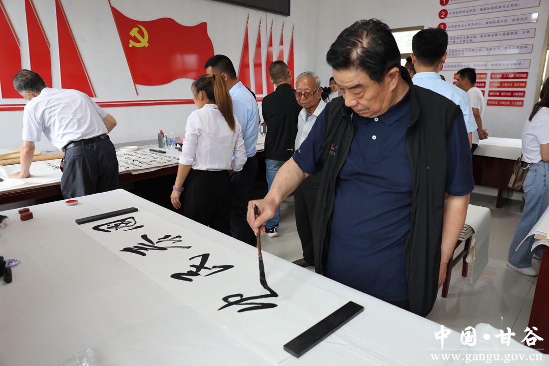 为庆祝中国共产党成立101周年,不断丰富群众文化生活和改善人居环境,展现新中国成立以来农村面貌发展的历史巨变及推动乡村振兴战略的实施,6月26日,甘谷县新兴镇雒家村党总支联合天水市秦州区环境卫生执法中队党支部、天水市天水湖景区管理处党支部在雒家村党群服务中心举办《喜迎二十大 奋进新征程》结对共建、助推乡村振兴和书画交流活动。