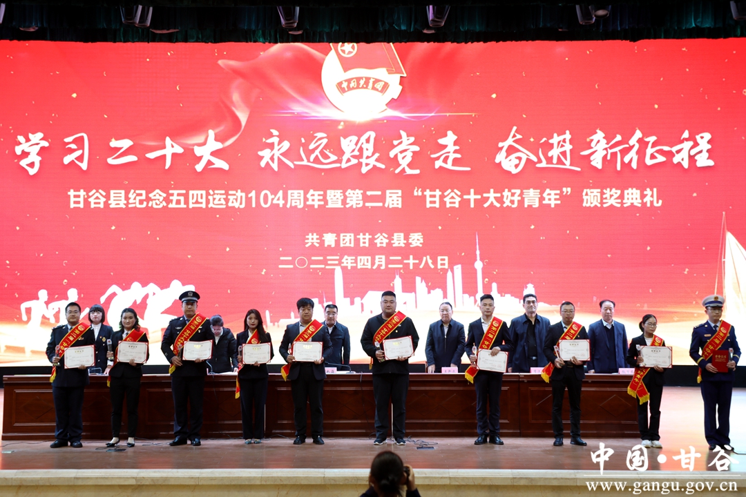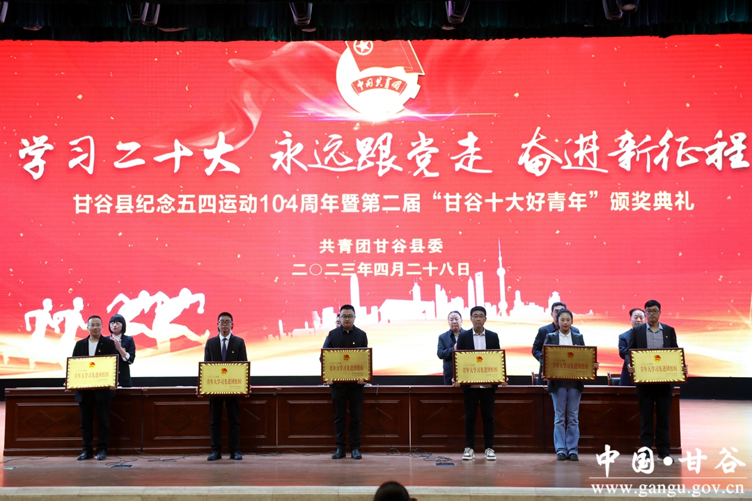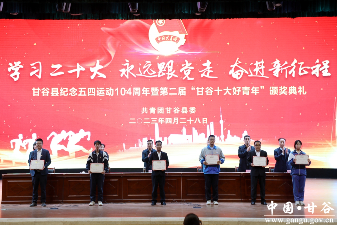 会议宣读了表彰决定。与会领导为获奖的“五四红旗团委”“五四红旗团支部(总支)”“优秀共青团干部”“优秀共青团员”“青年大学习先进团组织”及第二届“甘谷十大好青年”颁发了奖牌和证书。获奖代表作了发言。