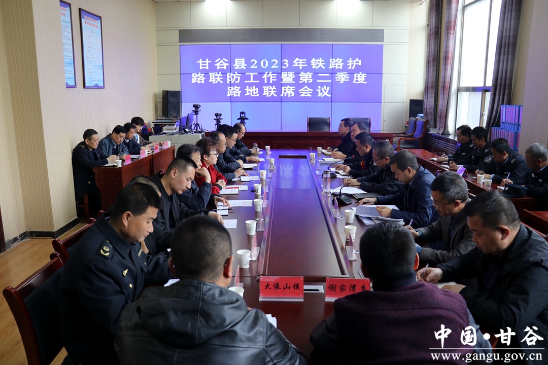 4月28日,甘谷县召开2023年铁路护路联防工作暨第二季度路地联席会议。县委常委、政法委书记刘强出席会议并讲话。县委政法委、县综治中心负责同志,铁路沿线乡镇政法委员、平安甘谷建设领导小组铁路护路联防组成员单位分管领导、火车站、铁路公安派出所负责人,县铁路护路联防巡查大队全体专兼职队员共计30余人参加会议。