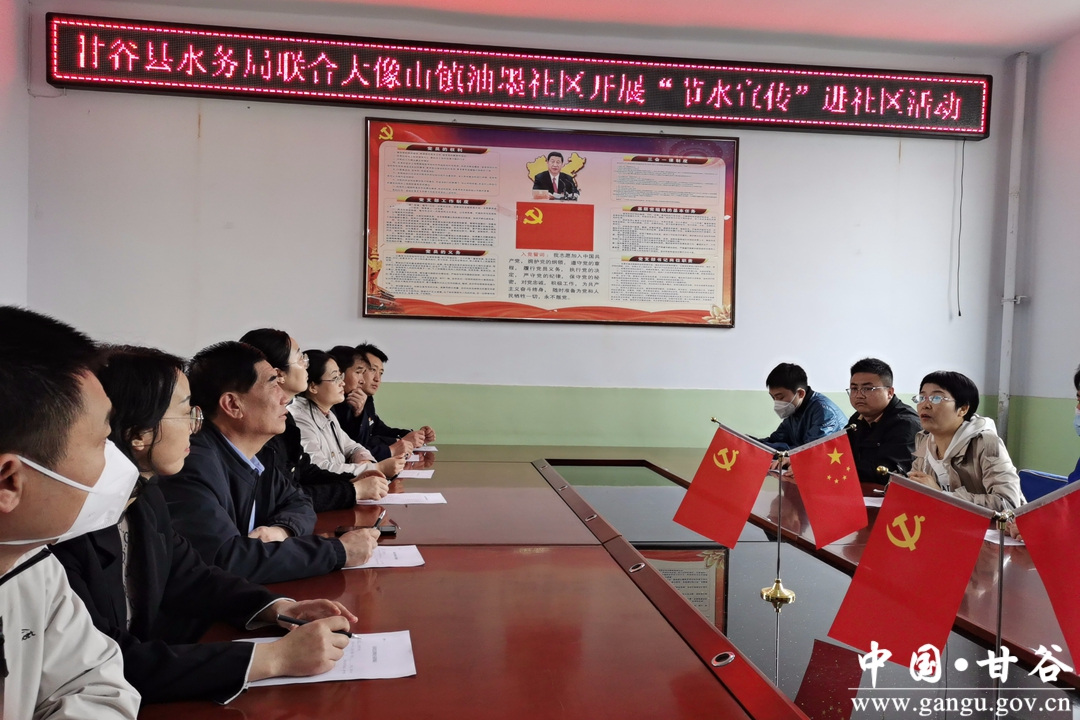 为实施国家节水行动,呼吁珍惜爱护水资源,形成合理用水、科学用水的良好风尚,4月20日,甘谷县水务局联合大像山镇油墨社区开展“节水宣传”进社区宣传活动。