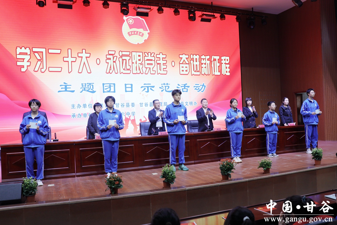 4月20日,由共青团甘谷县委、甘谷县教育局、甘谷县文明办主办的2023年“学习二十大·永远跟党走·奋进新征程”主题团日示范活动在甘谷县第六中学举行。县委副书记林如海出席活动并讲话,团县委、县教育局、县文明办等单位负责人及甘谷六中校领导、2023年新发展团员、部分师生代表共计1500多人参加活动。