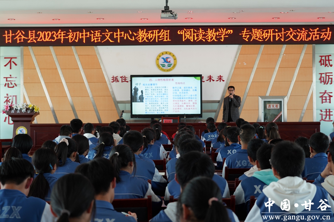 4月14日下午,甘谷县在西关中学举办2023年初中语文中心教研组推进全民阅读活动暨阅读教学专题研讨活动。活动由甘谷县教育局统一部署,县教研室统筹安排,县初中语文学科中心教研组具体实施。县教研室主任陈金卫出席会议,全县50余所初中学校的语文兼职教研员参加活动,活动由西关中学校长李鸿鹄主持。