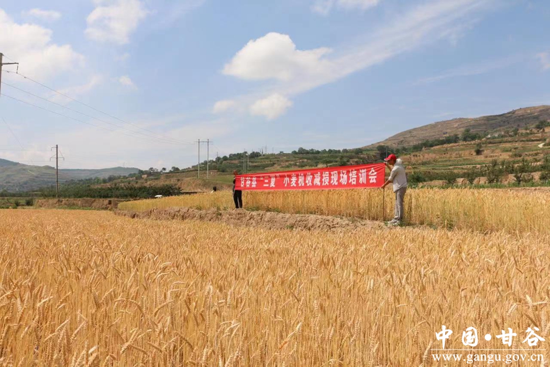 为了确保颗粒归仓,增强“减损就是增产、减损就是增收”的意识。近日,甘谷县农机服务中心组织技术人员深入到安远镇阳赛村小麦机收现场,开展了“三夏”小麦机收减损现场培训会。