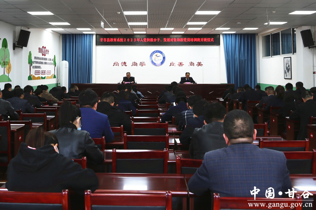 为了深入学习贯彻党的二十大精神和习近平新时代中国特色社会主义思想,扎实推动“三抓三促”行动落地见效,切实做好全县教育系统入党积极分子、发展对象和新党员的教育管理工作,提升入党积极分子、发展对象和新党员的整体素质,打造忠诚干净担当的高素质专业化党员教师队伍,保持党组织的先进性和纯洁性,提高党的凝聚力和战斗力,为推动县域教育事业高质量聚力赋能,4月8日下午,甘谷县教育系统入党积极分子、发展对象和新党员集中培训班开班仪式在西城区九年制学校举行。县政府教育督导室主任郑琦主持开班仪式。全县教育系统入党积极分子、发展对象和新党员和相关工作人员共计110余人参加仪式。